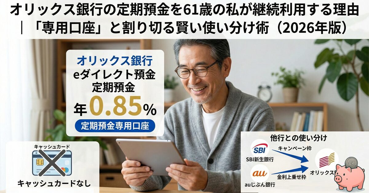 【2026年最新】オリックス銀行の定期預金を61歳の私が継続利用する理由|「専用口座」と割り切る賢い使い分…