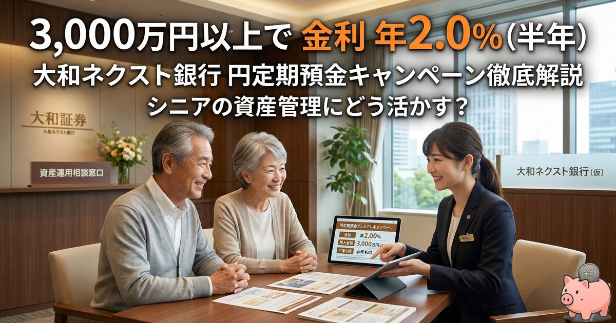 【2026年最新】3000万円以上で金利年2.0%|大和ネクスト銀行の円定期預金キャンペーンを徹底解説!シニアの…