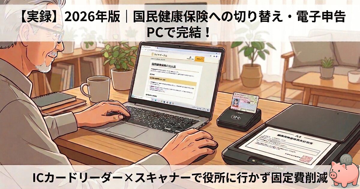 2026年最新版、国民健康保険への切り替え手順を徹底解説!任意継続を卒業し、PCとICカードリーダーを駆使して自宅で電子申告を完結させる全手順を実録公開します。