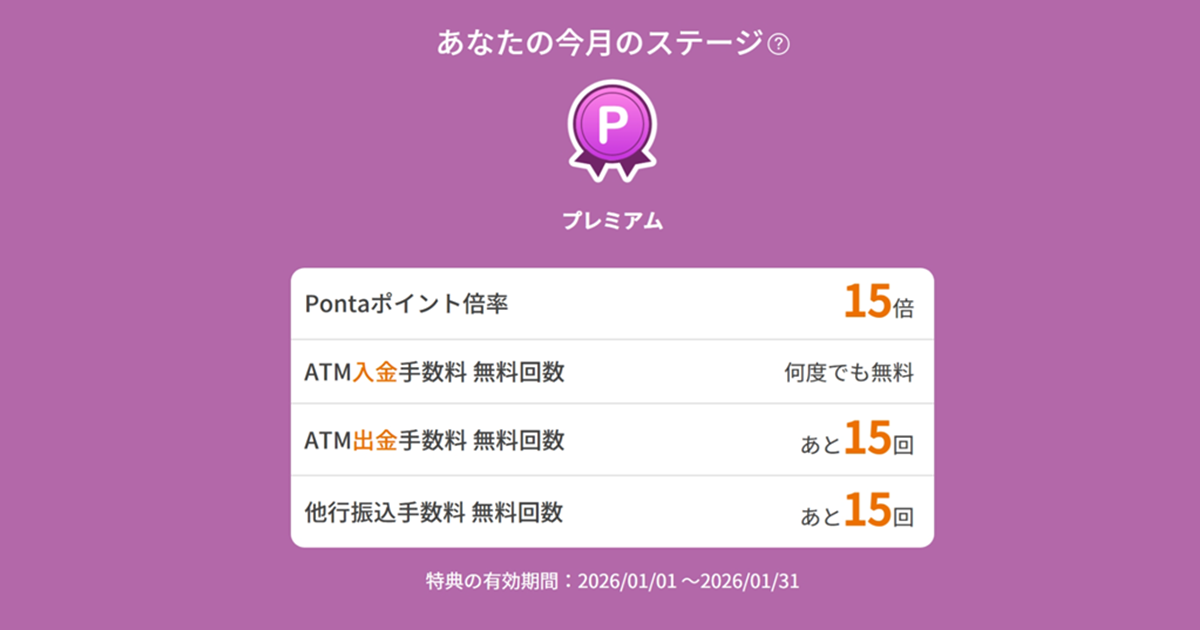 プレミアムステージに到達すれば、特別な申請をしなくても普通預金金利が優遇されます。