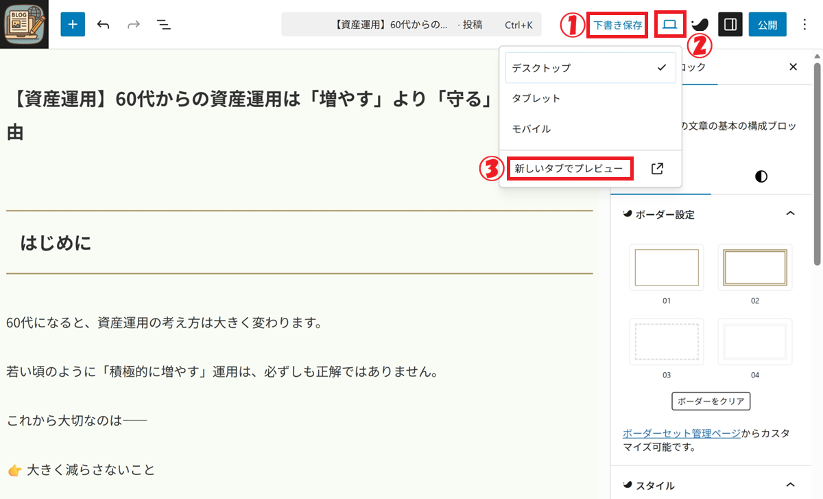 例:【資産運用】60代からの資産運用は「増やす」より「守る」が正解な理由