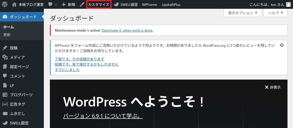 ②「メンテナンスモード」が有効になっていることを確認