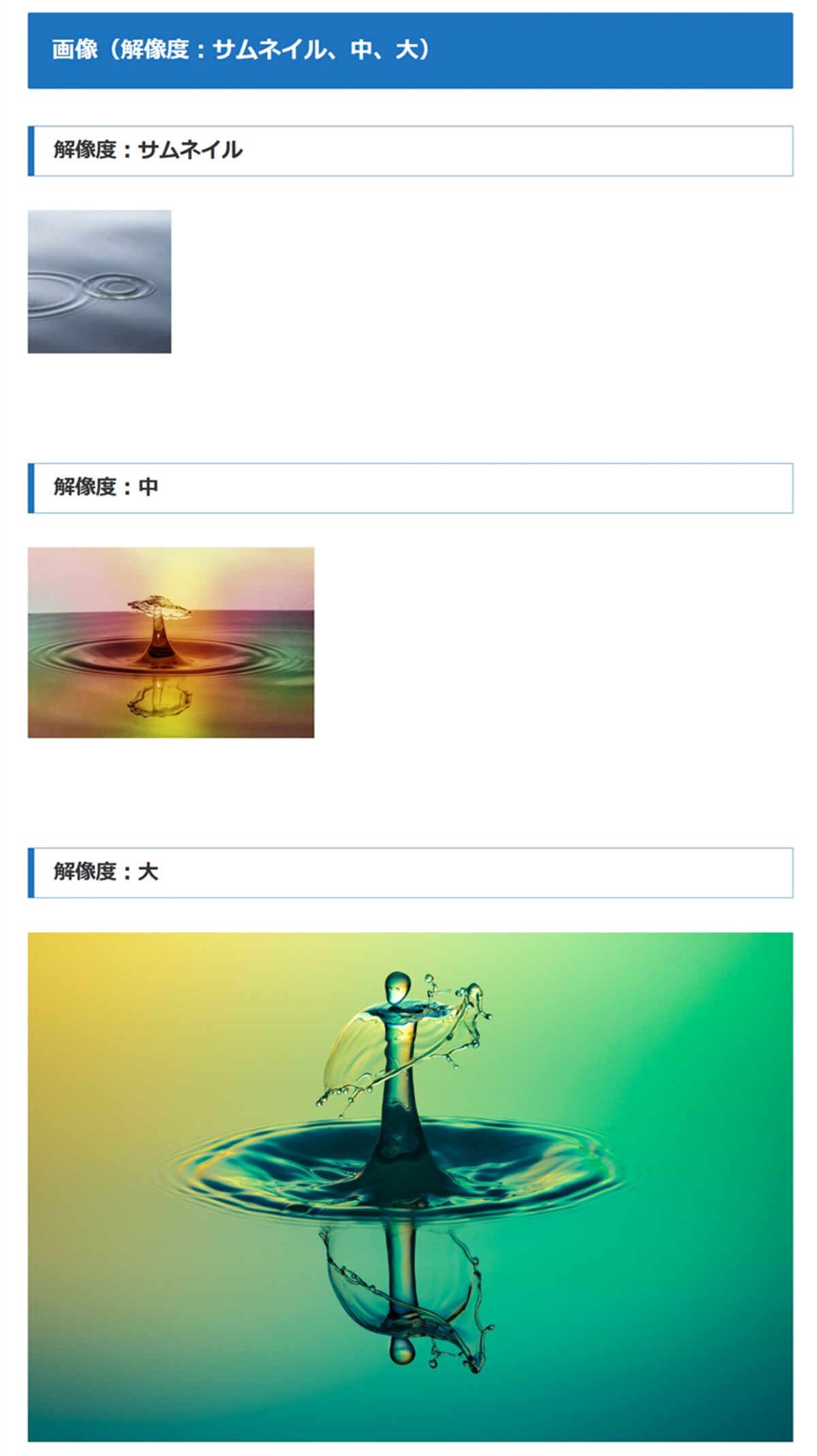 同じ操作を繰り返して、解像度「サムネイル」「中」「大」の3枚の画像を作成