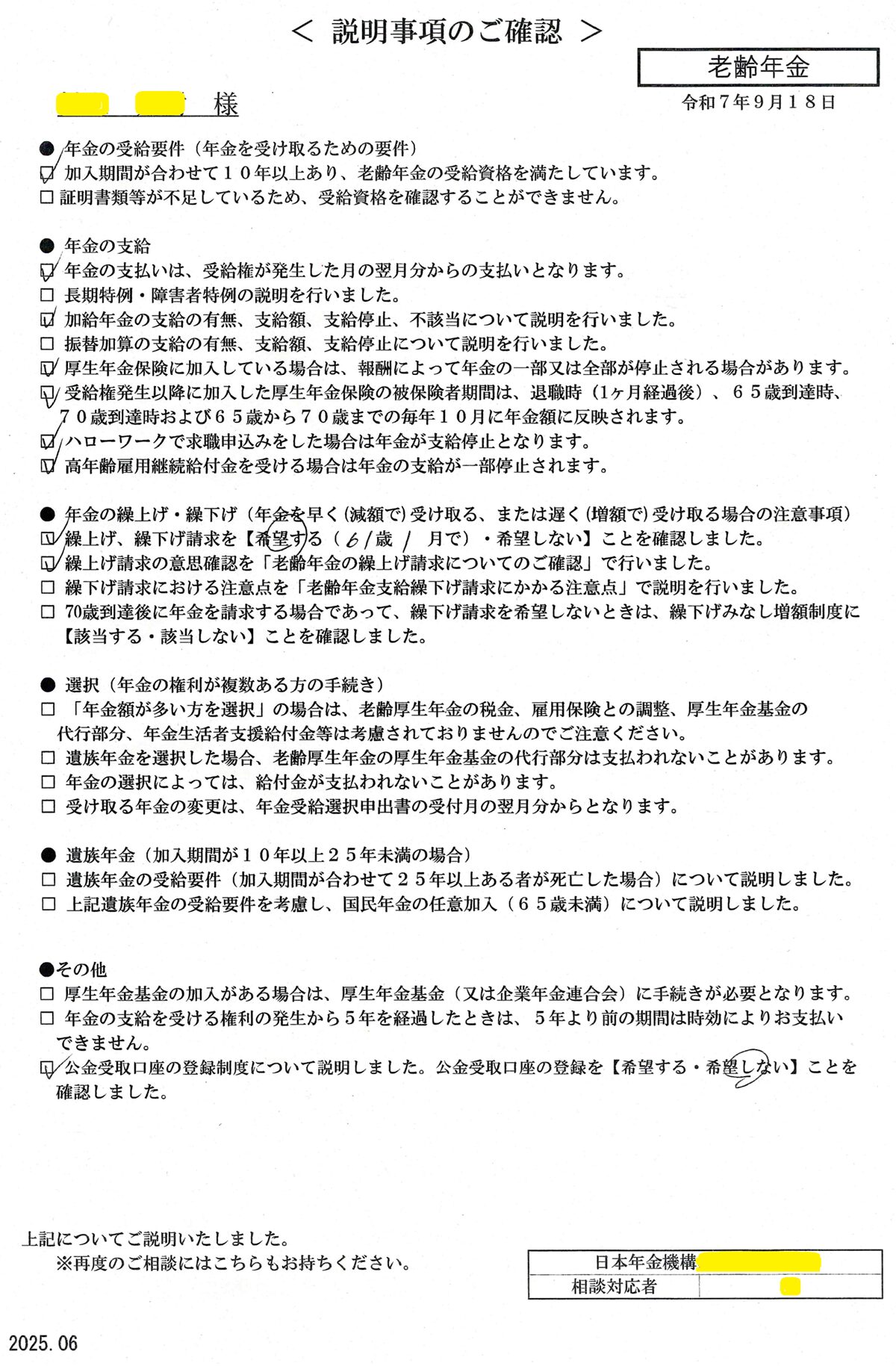 → 繰上げ受給に関する説明事項の内容を、再確認できる資料です。