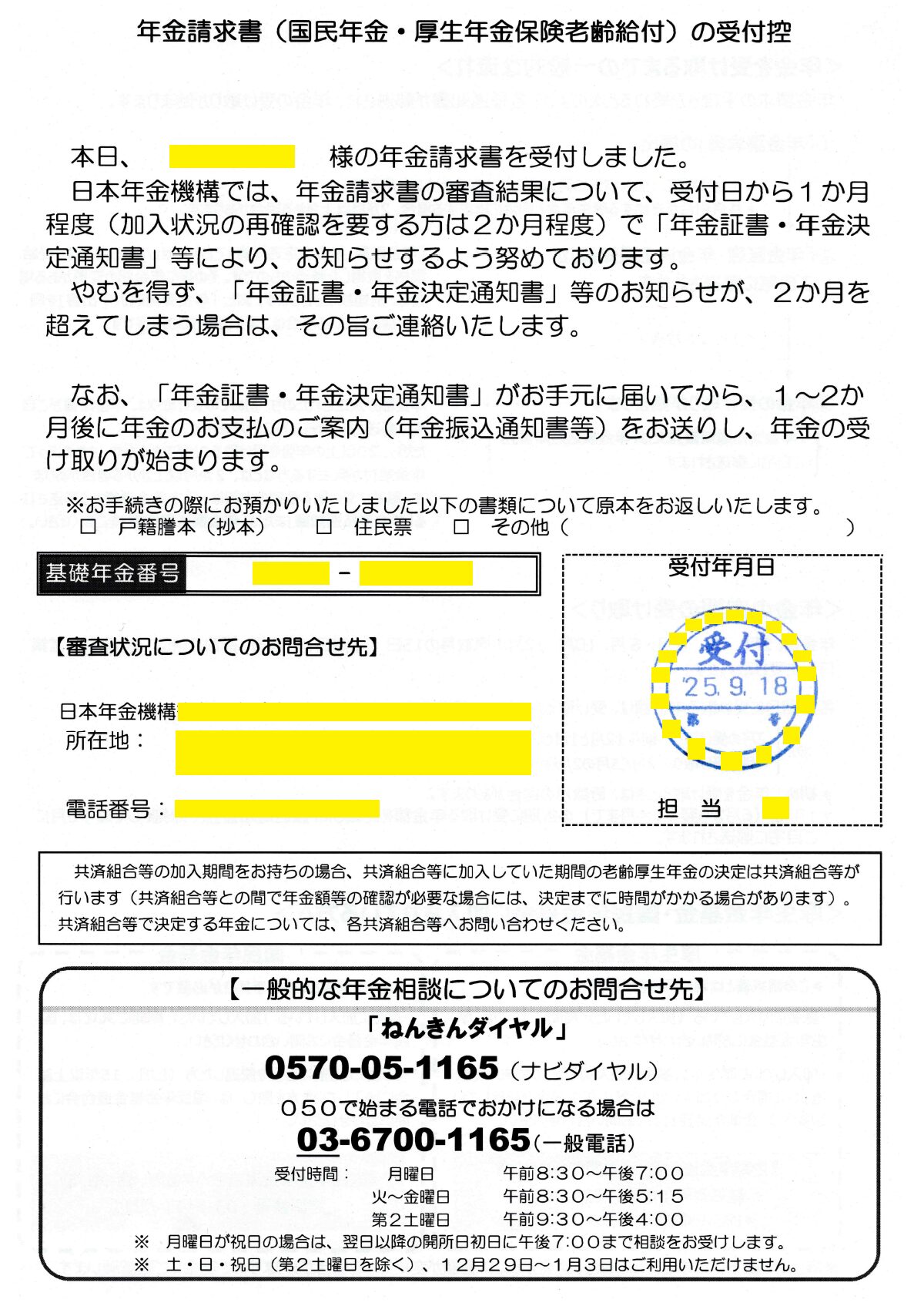 手続き完了後は、およそ1ヵ月ほどで「年金証書」や「年金決定通知書」が届く予定 と案内を受けました。
