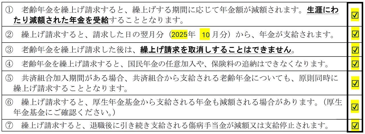 実際に日本年金機構の「老齢年金の繰上げ請求についてのご確認」を確認してみて、次の点が特に印象に残りました。
