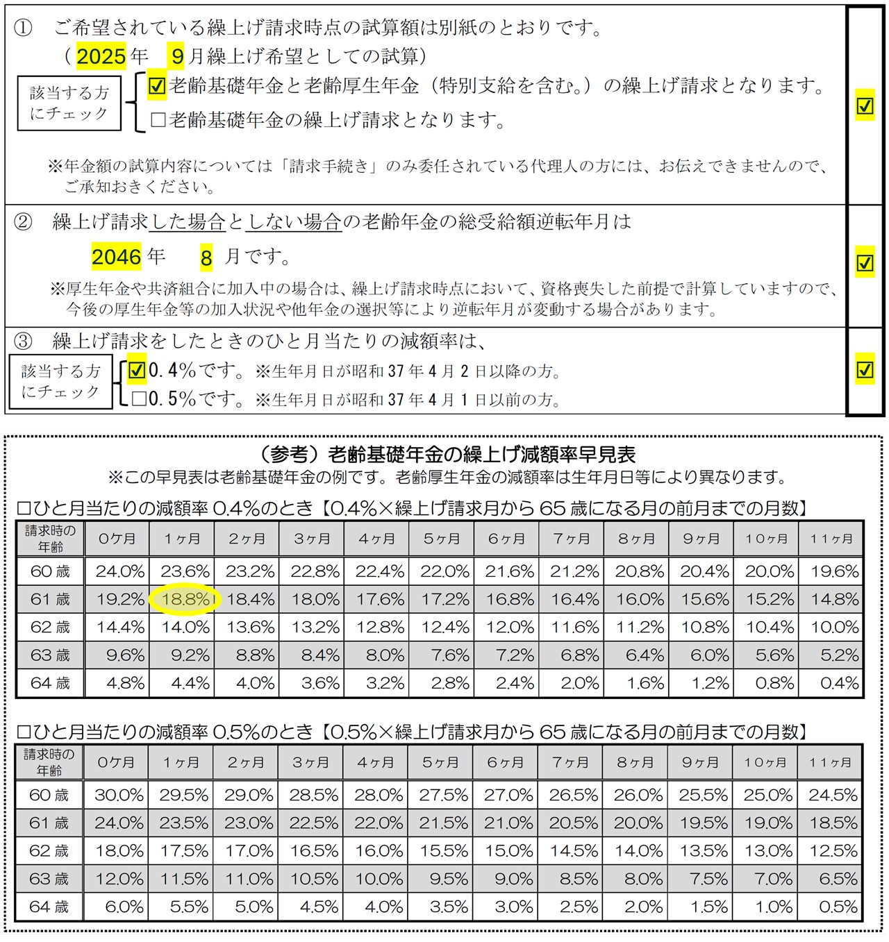 - 繰上げ後の減額率を試算しても、家計に大きな支障がないことを確認できた