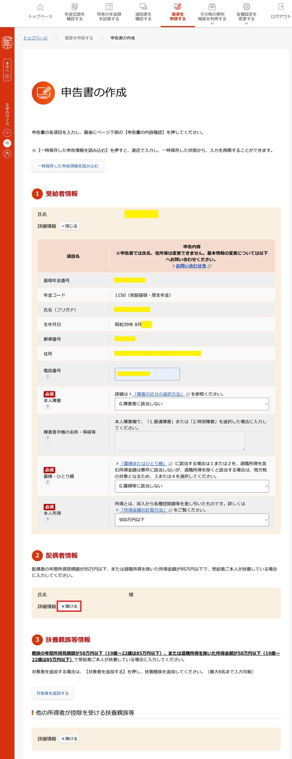 - 控除を反映し、年金から差し引かれる源泉徴収額(税金)を適正にしたい場合