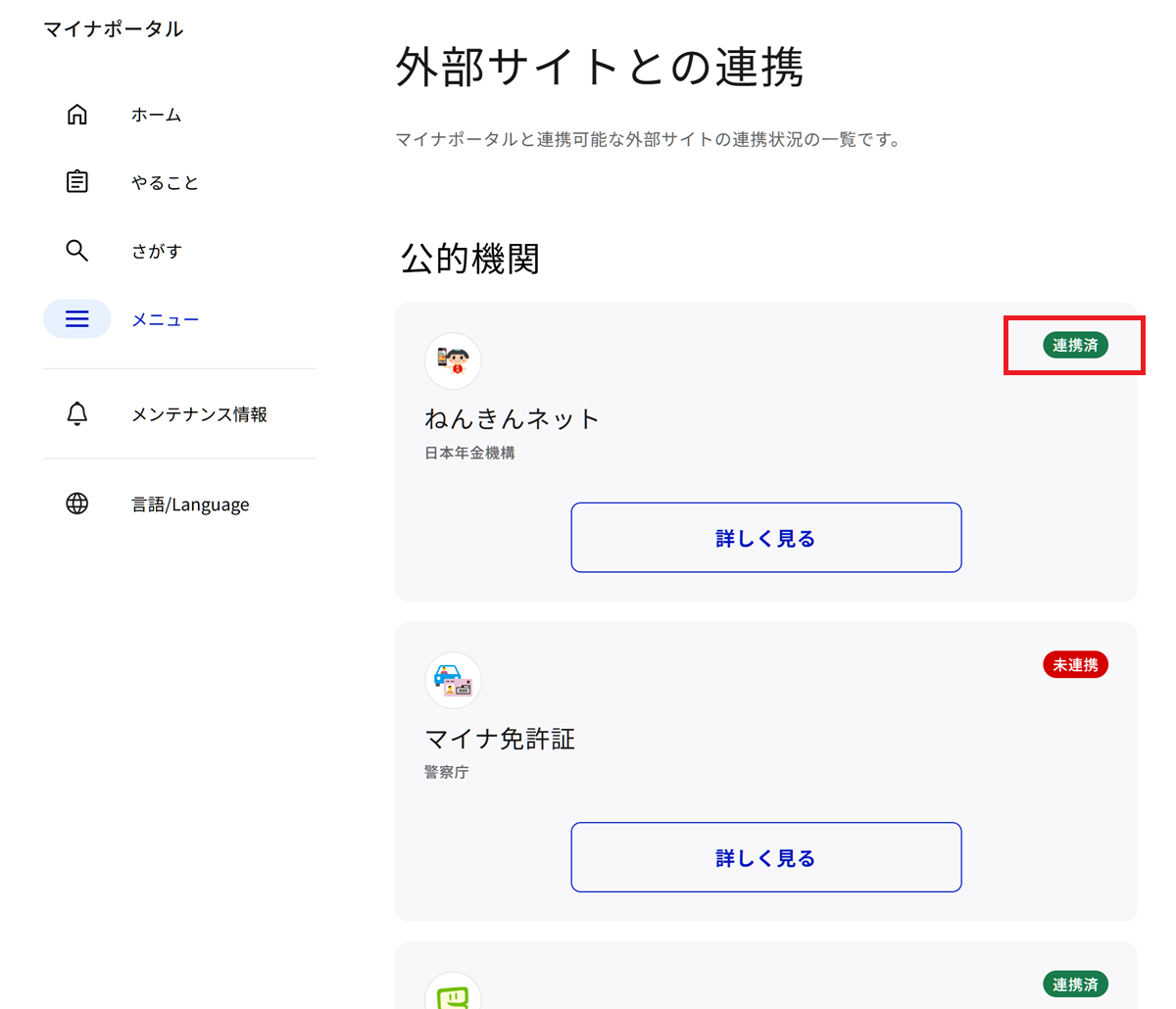「ねんきんネット」が連携済かを確認 (未連携の場合は連携手続きを実施)