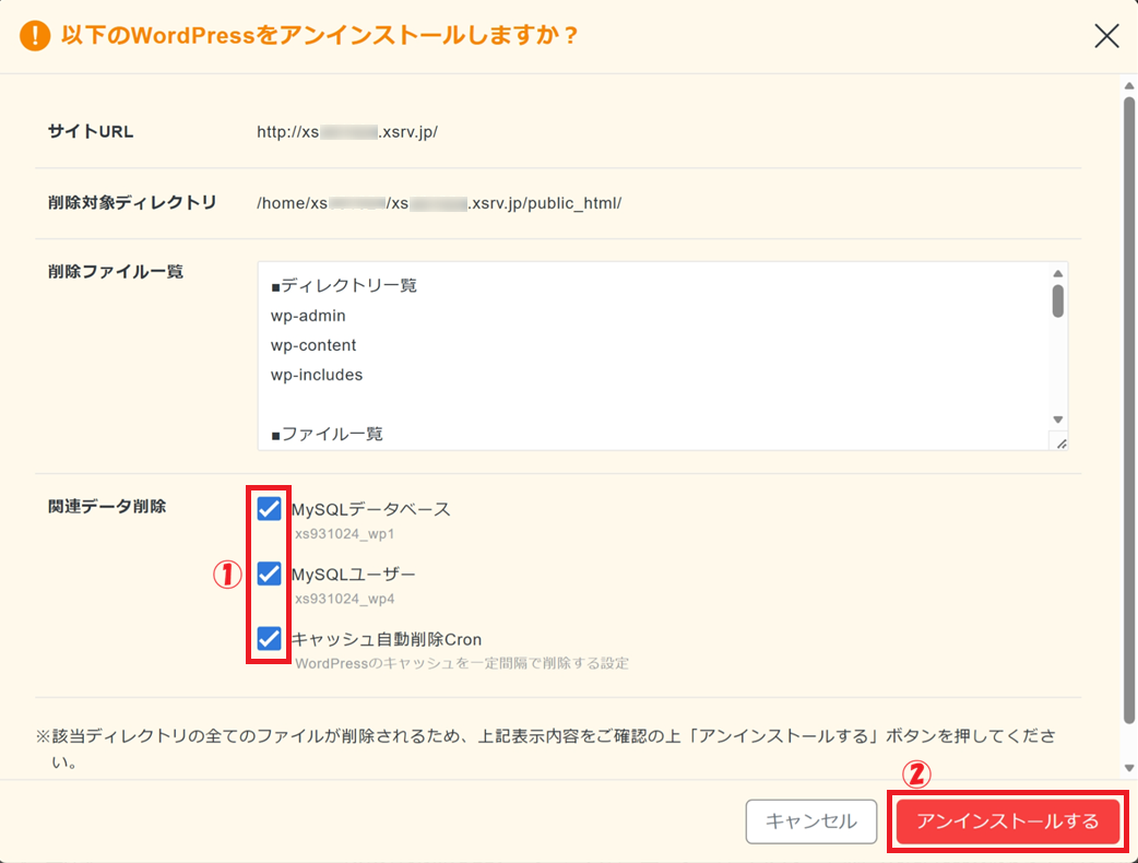「譲渡したいドメイン」を移行元サーバーから削除すると、 そのサーバー上のサイトはドメインと紐付かなくなるため、アクセス不可になります。