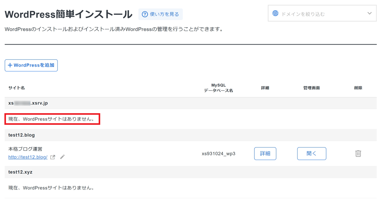 「現在、WordPressサイトはありません。」が表示されればOKです。
