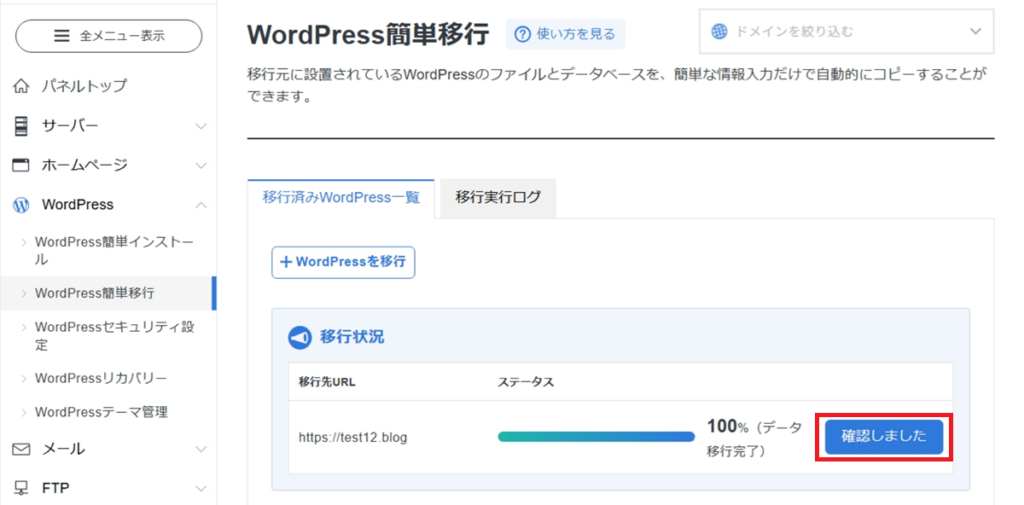 この方法なら、ファイル操作(FTP)などの専門知識がなくても、エックスサーバー標準の「WordPress簡単移行」ツールだけで完結します。