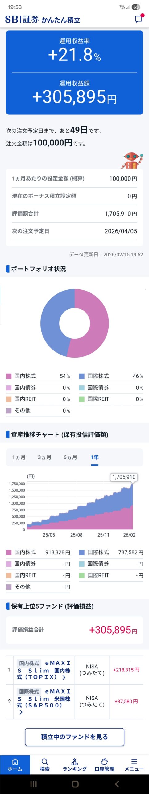 2025年1月から、毎月10万円の積立をコツコツと継続中です。
