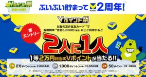 現在、抽選で最高50,000円相当のVポイントが当たる大型キャンペーンが実施されています。