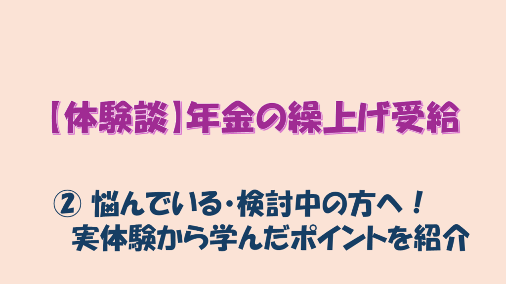 【体験談】「年金の繰上げ受給」②悩んでいる・検討中の方へ!実体験から学んだポイントを紹介