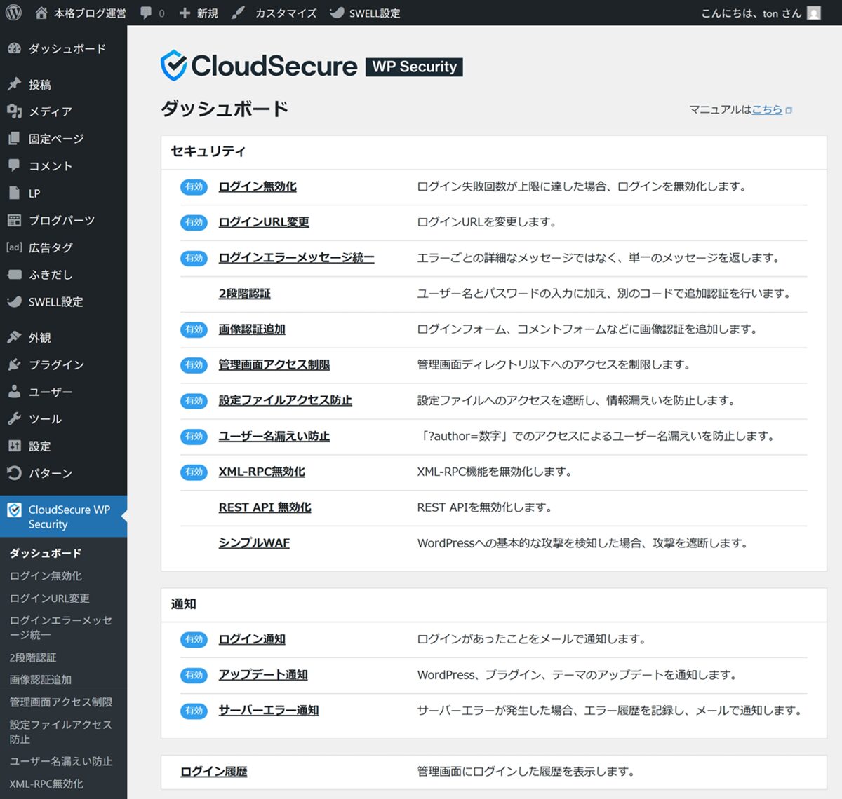 CloudSecure WP Security には、さらに細かい設定項目もありますが、初心者のうちは触らなくて大丈夫です。