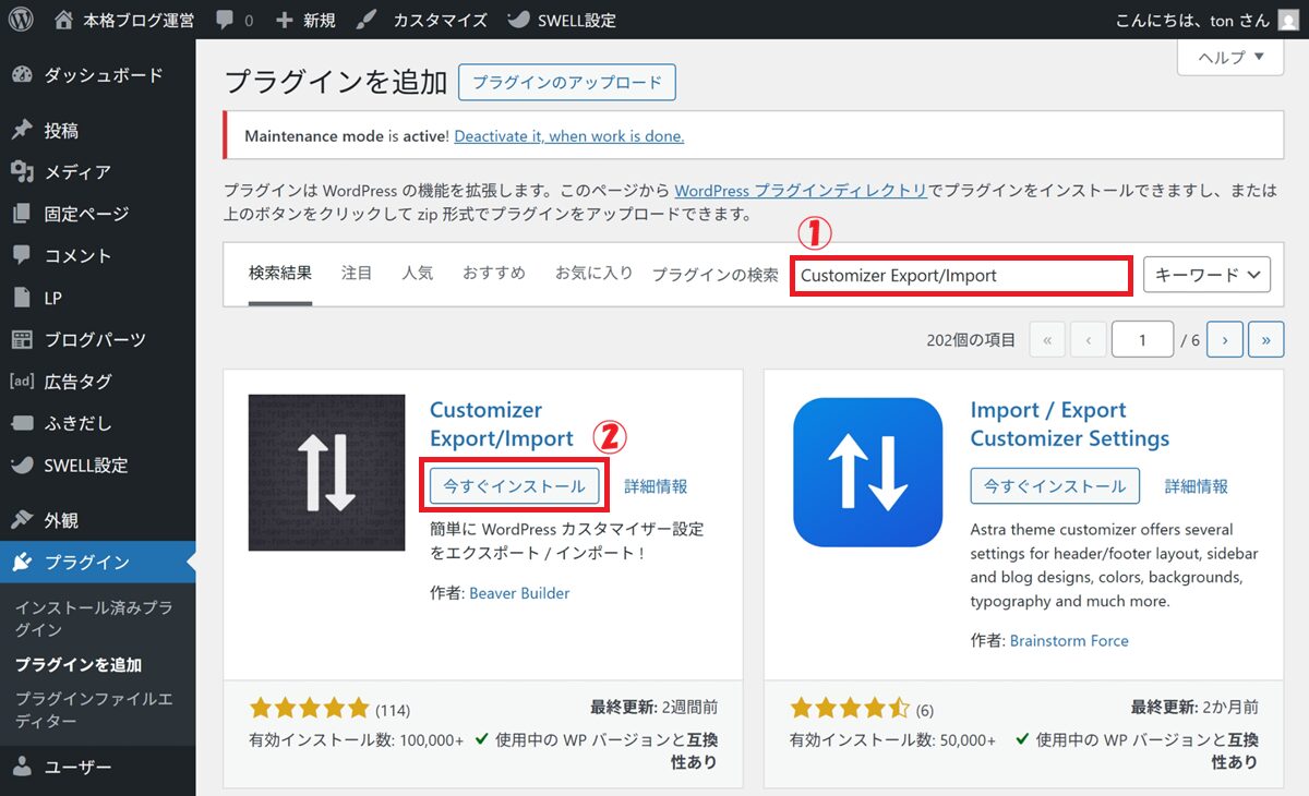 → 内装工事中なので「工事中・関係者以外立入禁止」の札を出す - Customizer Export/Import