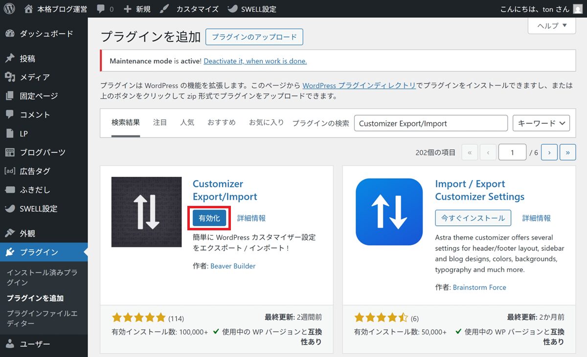 「Maintenance mode is active!」と表示されていれば、あなたのブログはメンテナンスモードに切り替わっています。