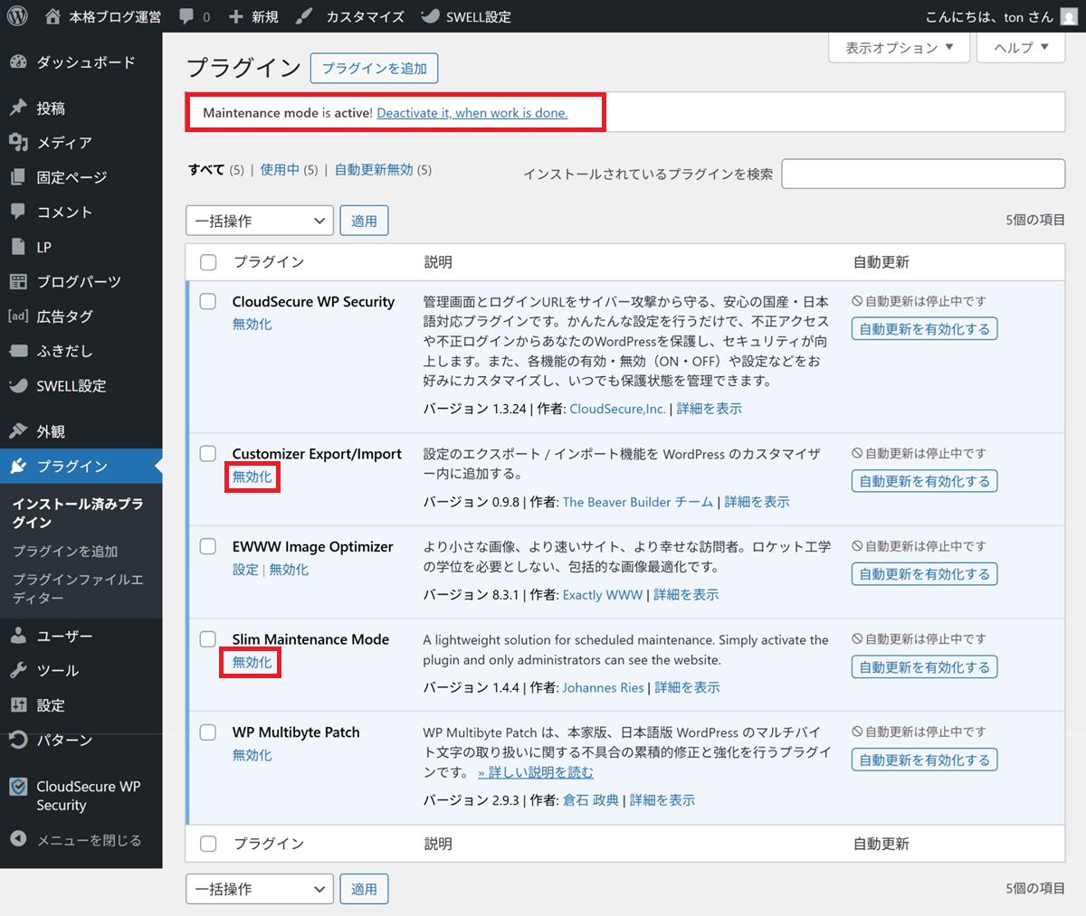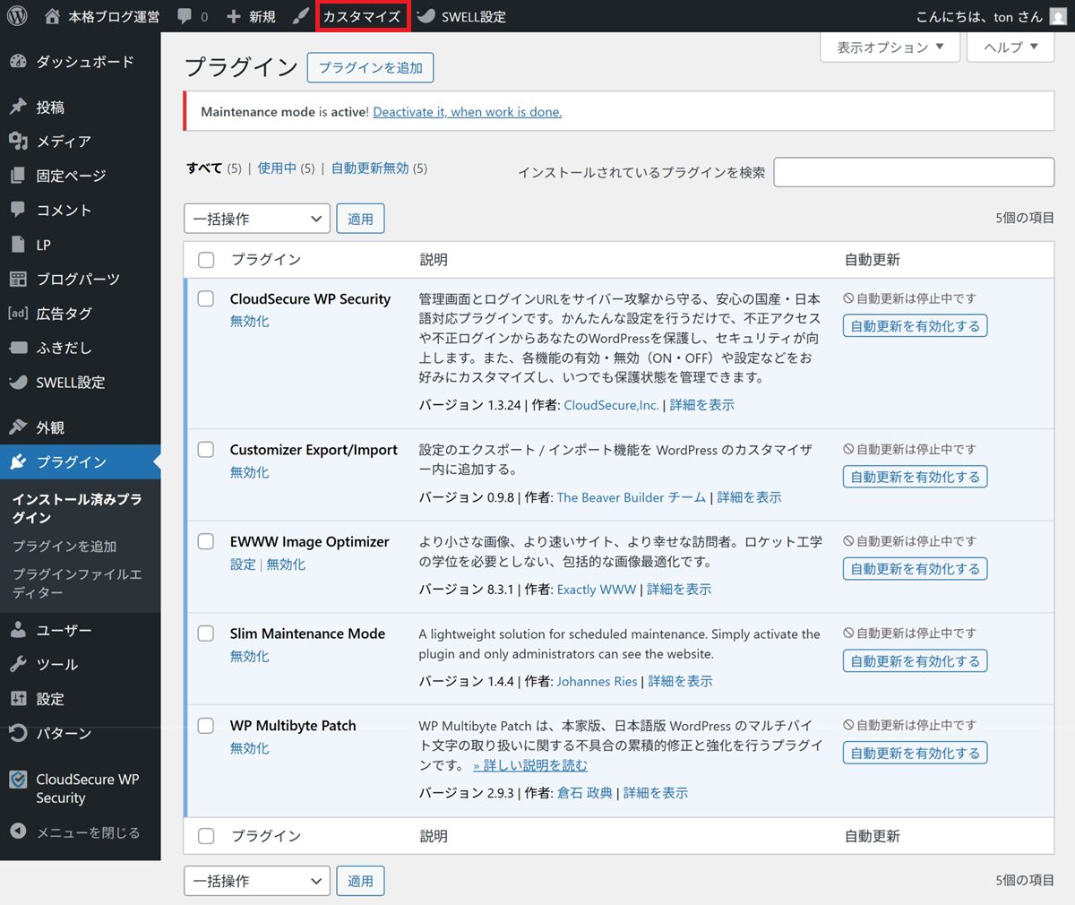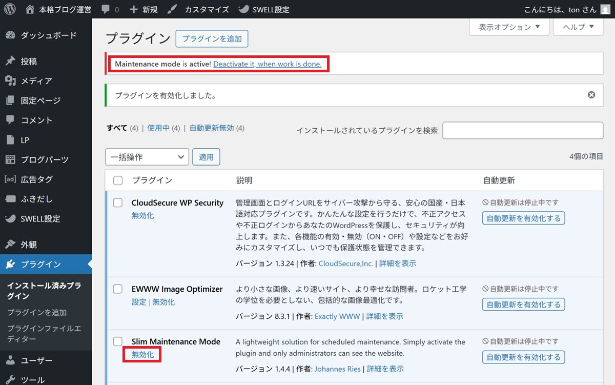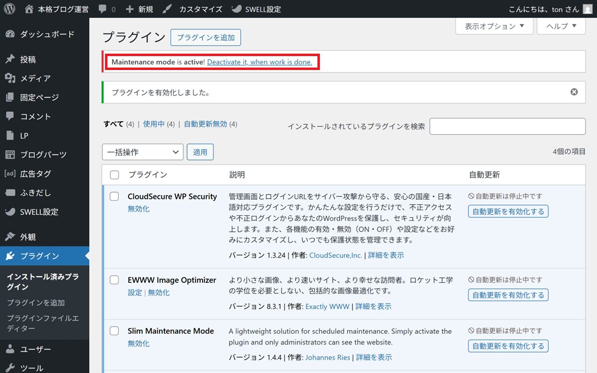 Slim Maintenance Mode は、ワンクリックでサイト全体をメンテナンスモードに切り替えられる軽量プラグインです。