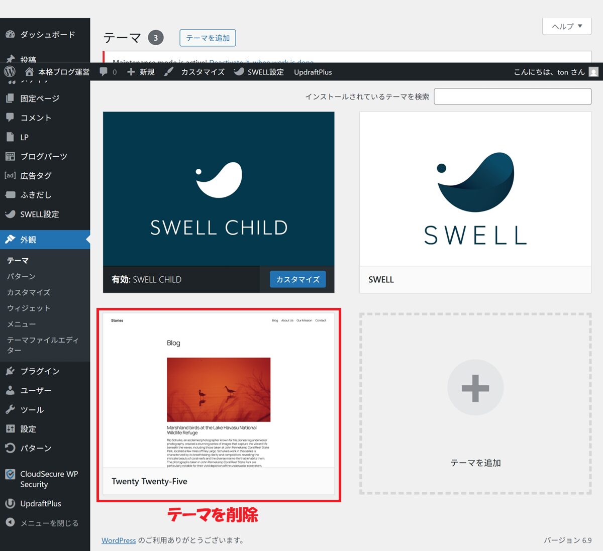 1.テーマを1つ削除