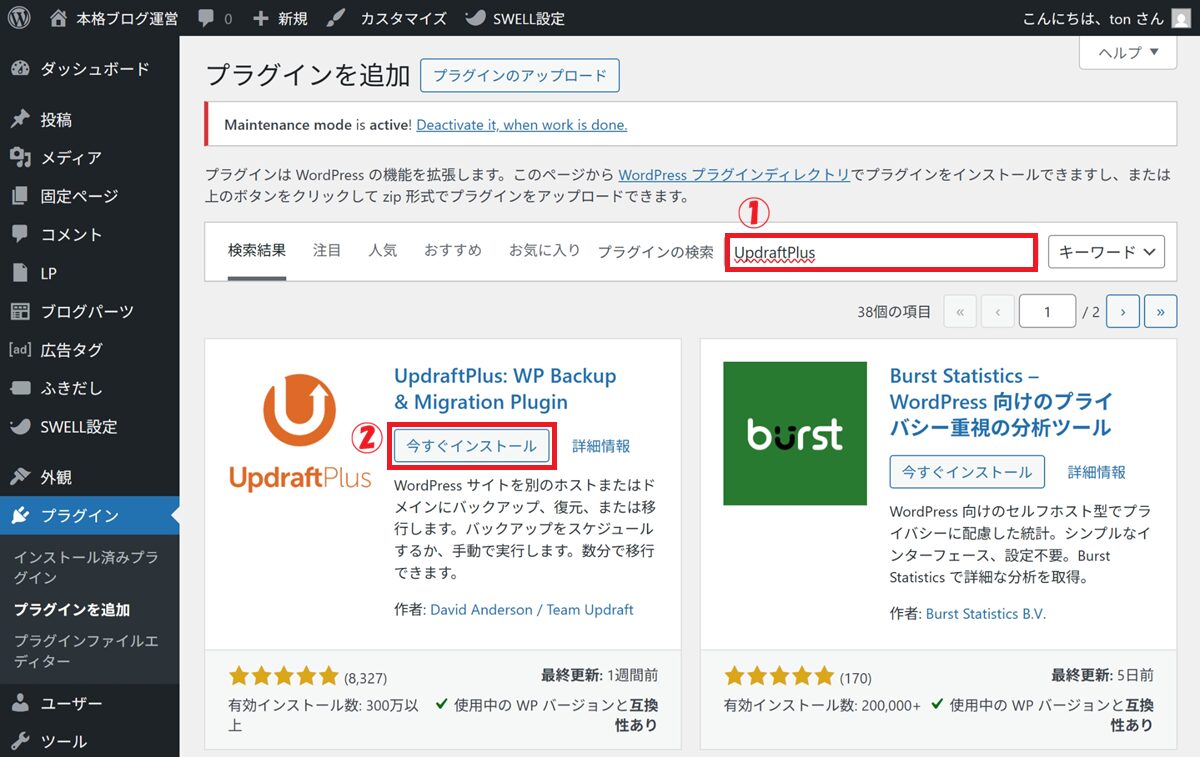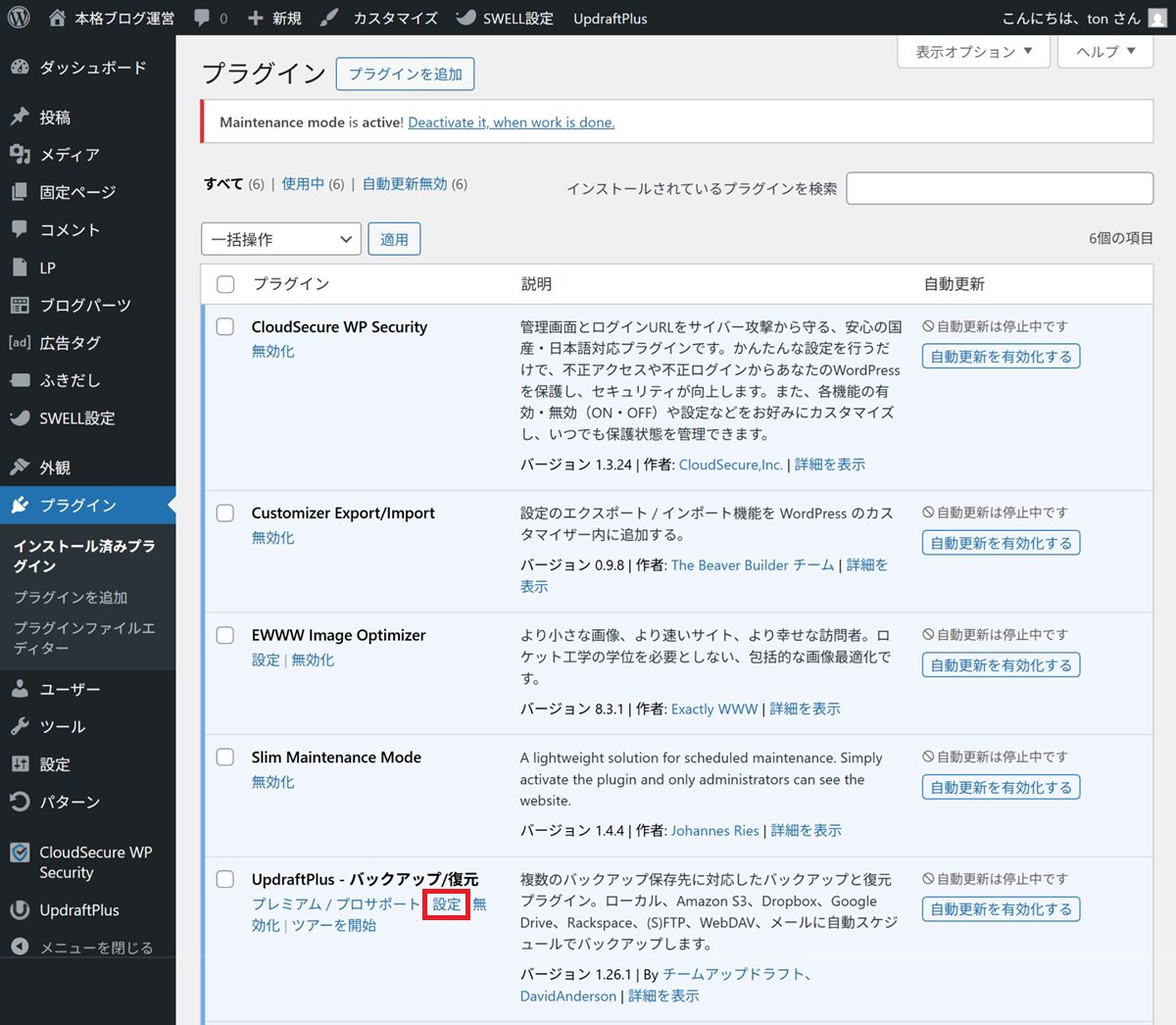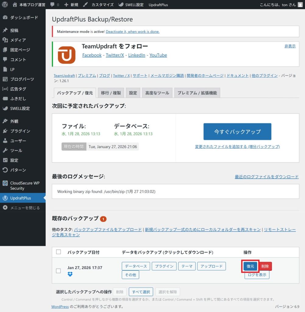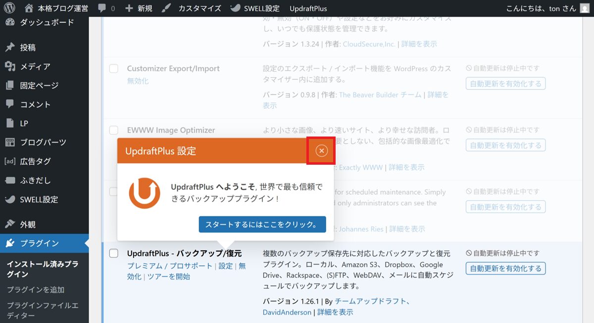 (今回は UpdraftPlus )
