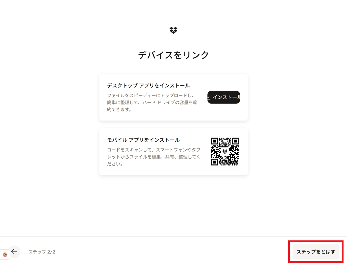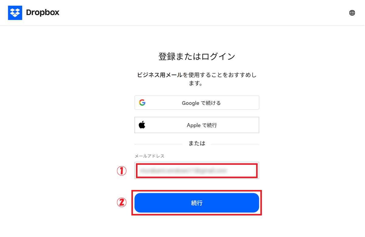 Dropbox公式サイトにアクセス