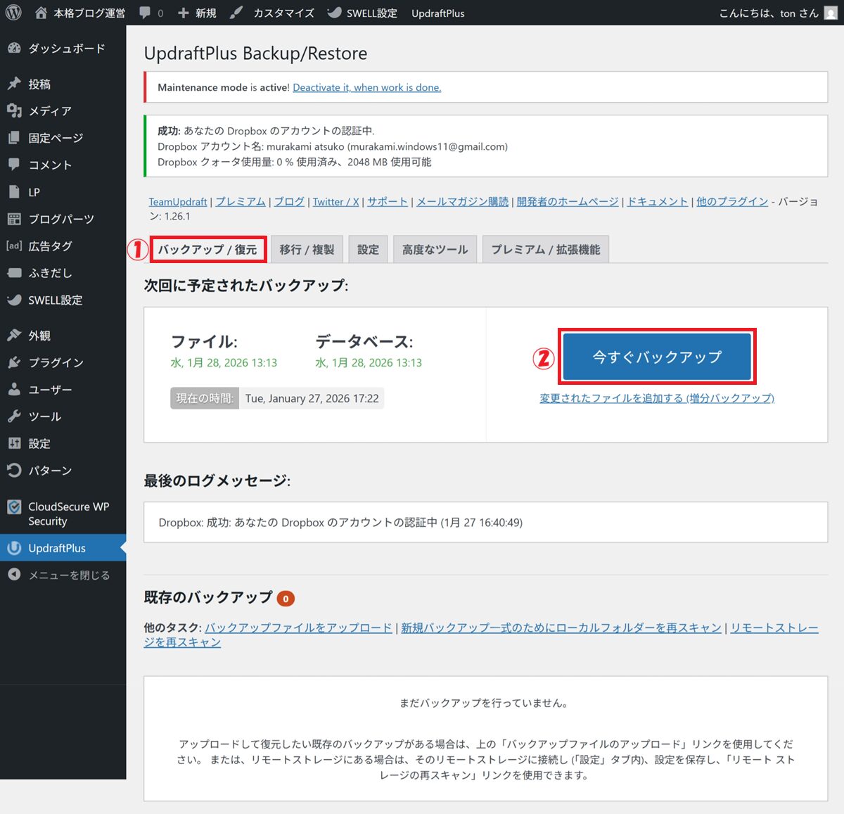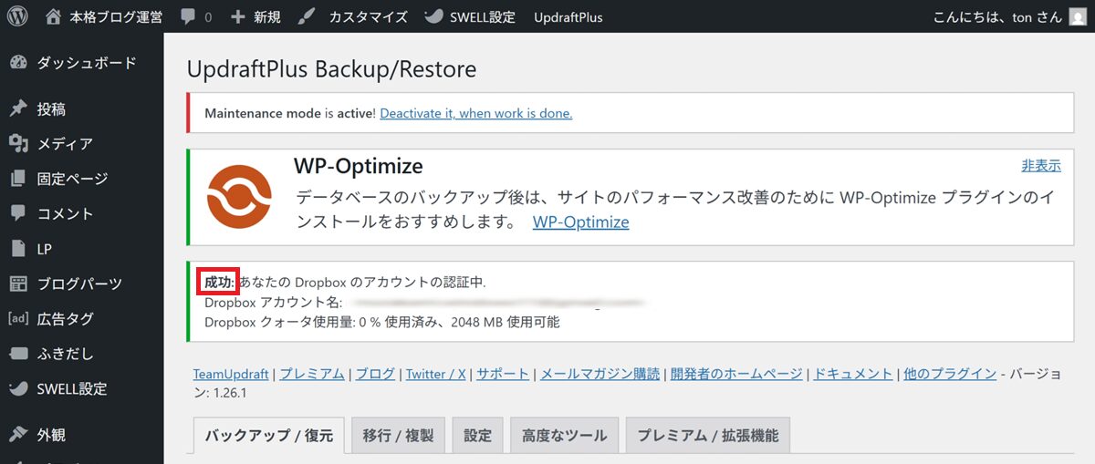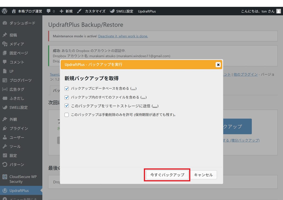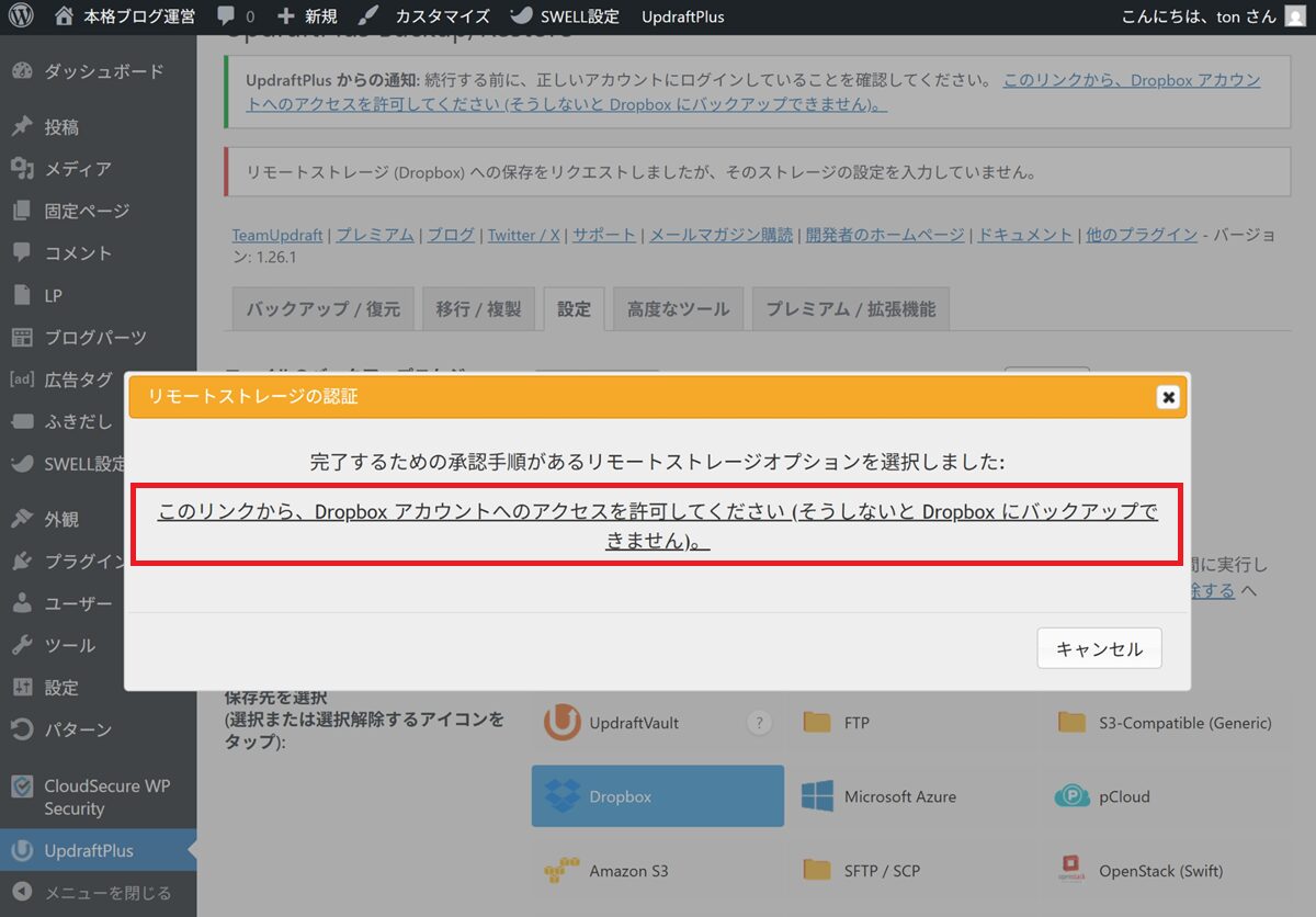 UpdraftPlusとDropboxなら、