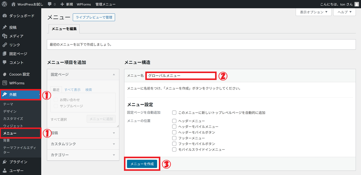 今回はブログ開設の体験が目的なので、次の3つを作成します。