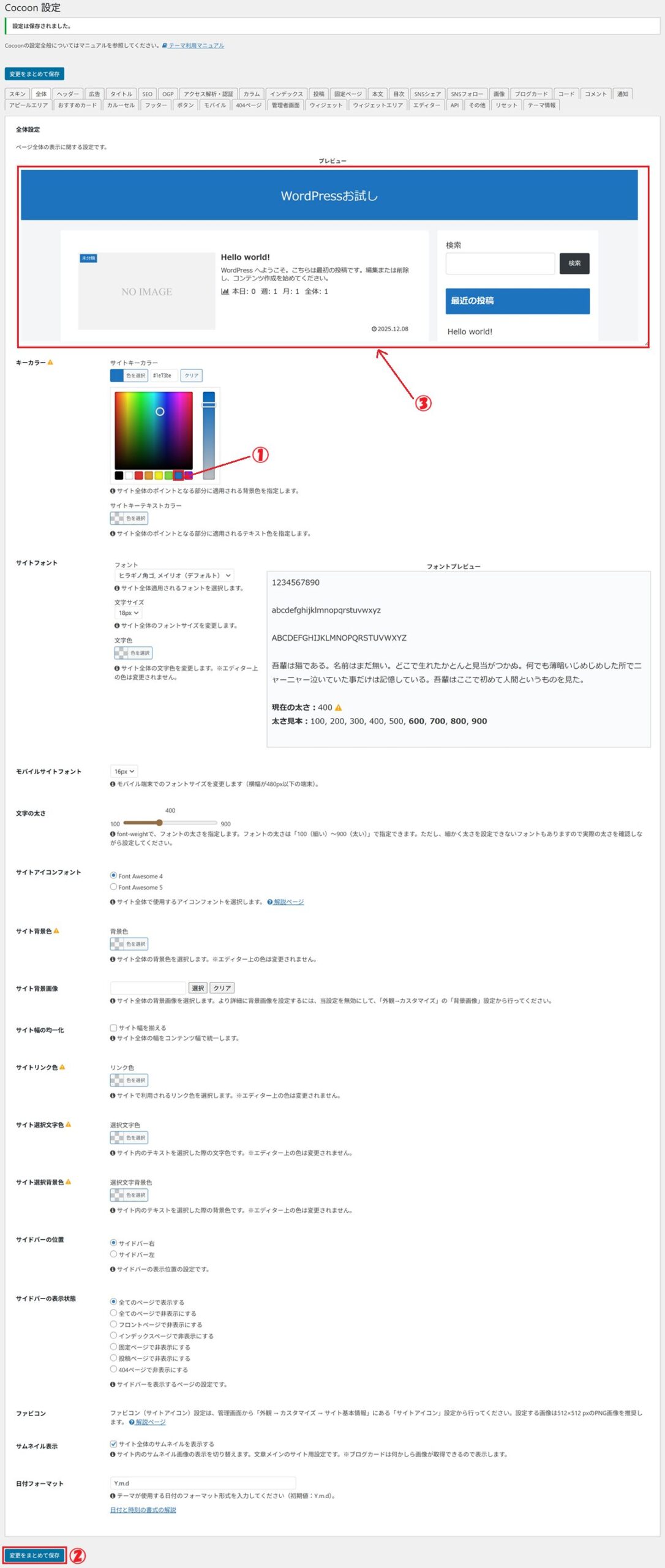 ここでは、サイトキーカラー の設定だけ紹介します。