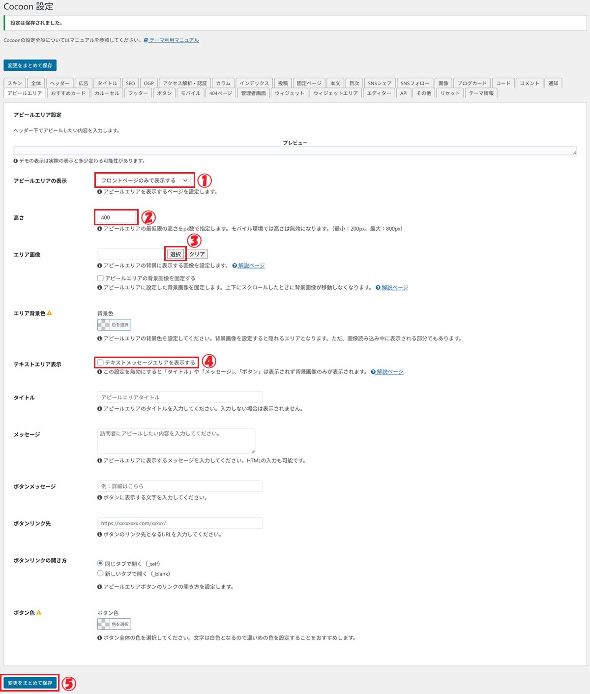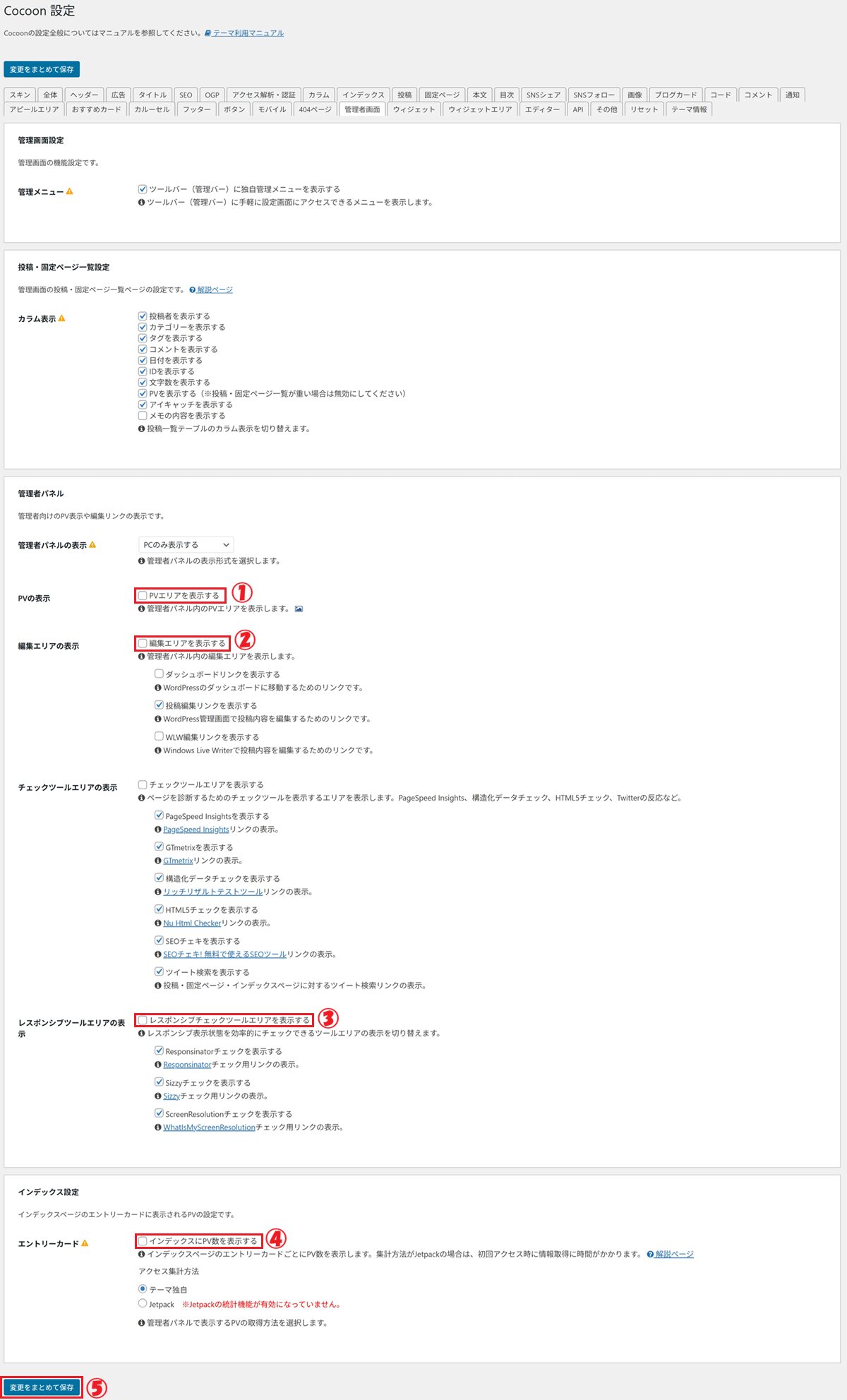 Cocoonは設定項目が多いため、初めて見ると少し驚くかもしれません。