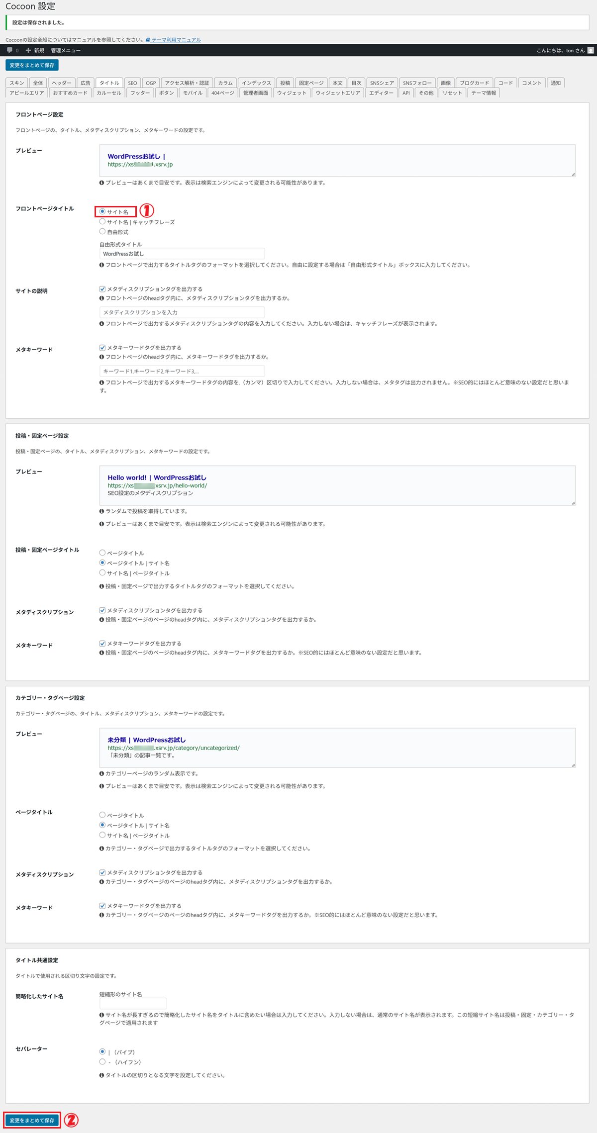 今回は、Cocoonの初期設定を中心に進めてきました。