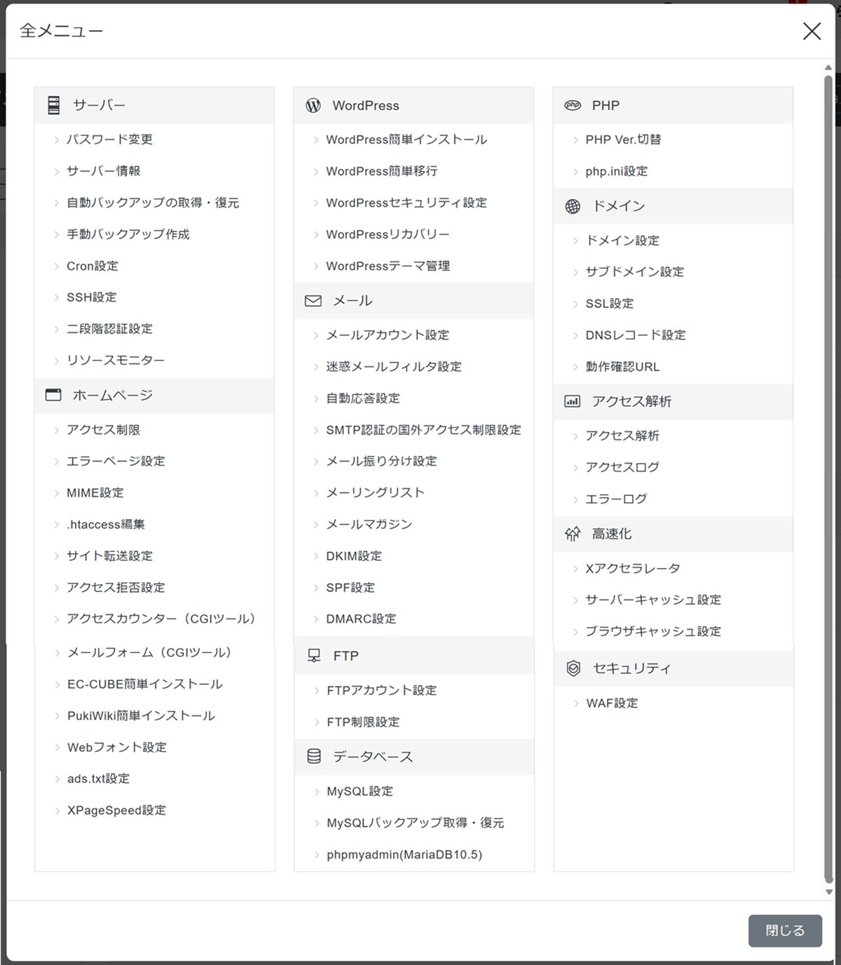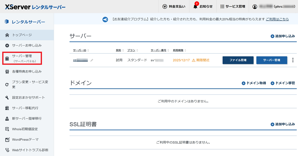 XServerの10日間無料お試し期間中は、一部の機能に制限があります。