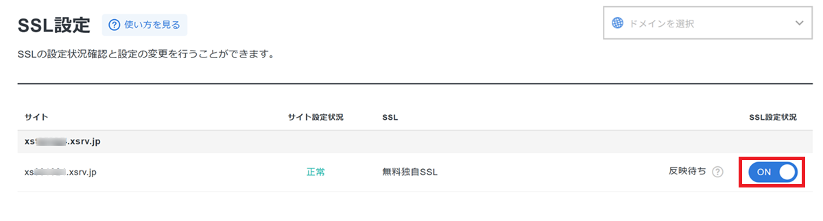 SSL設定を ON にするだけで、サイトが https 化 されます。