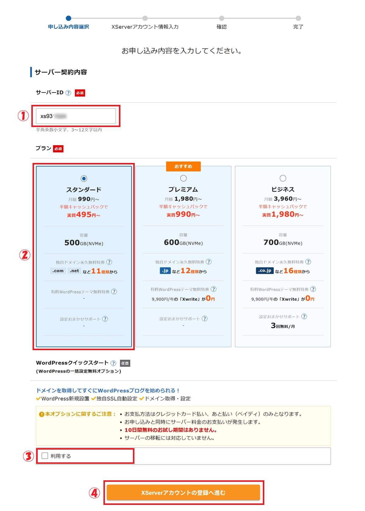 本契約 → 独自ドメイン取得 → WordPressインストール