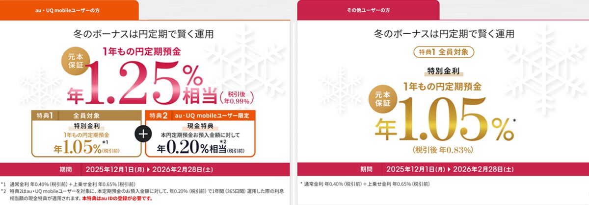 auじぶん銀行 冬の1年もの特別金利キャンペーン