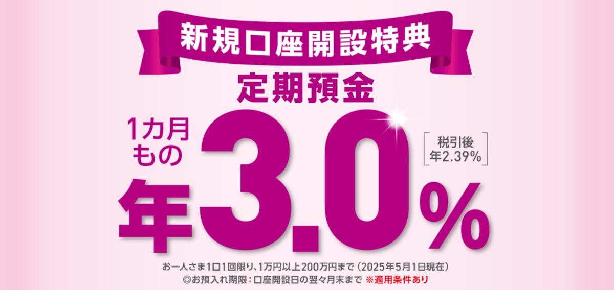 【新規口座開設者向け】定期預金 金利ランキング