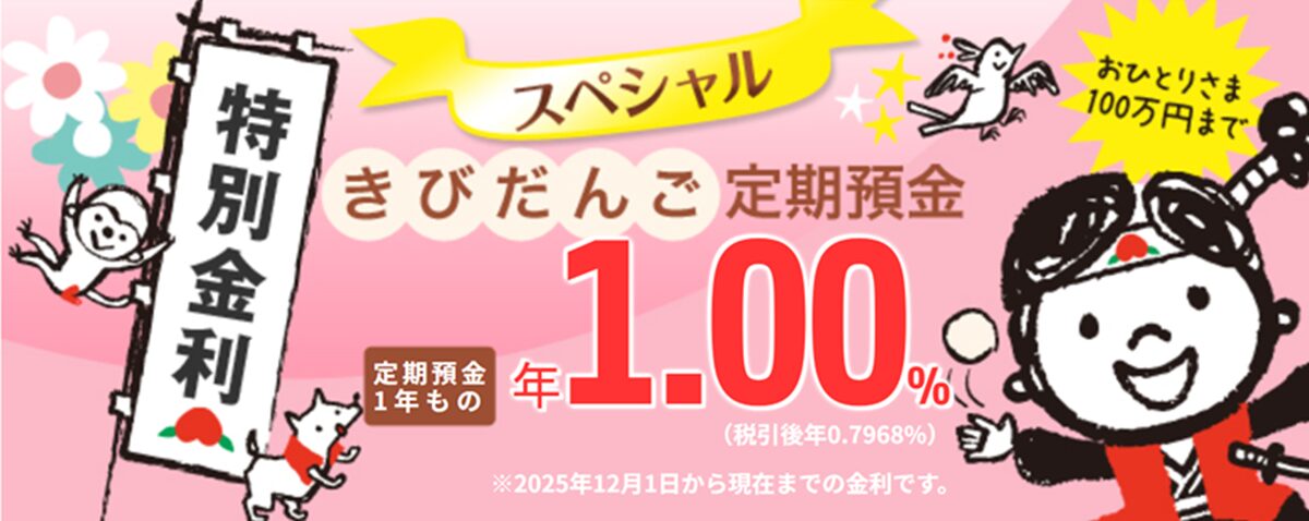 トマト銀行 スペシャルきびだんご定期預金(1年もの)