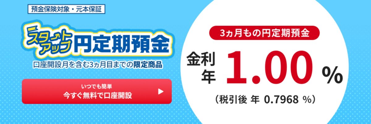 - 既存口座でも 1年もの 1.00%前後 が現実的