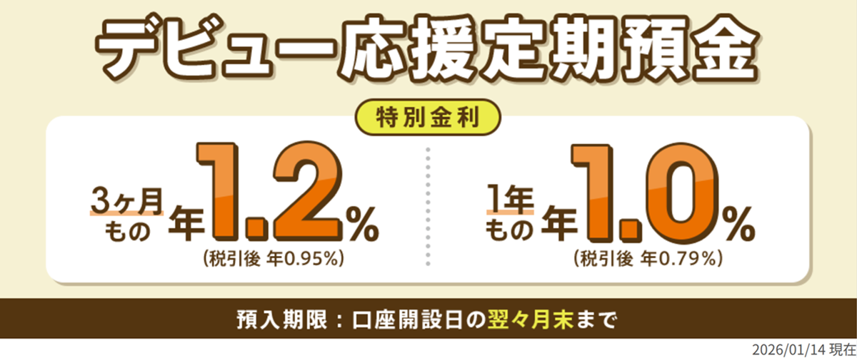 - 定期預金キャンペーンの 最低条件を満たしやすい