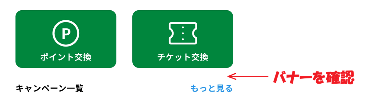 ホーム画面のポイント交換の下に表示されるバナーを確認します。
