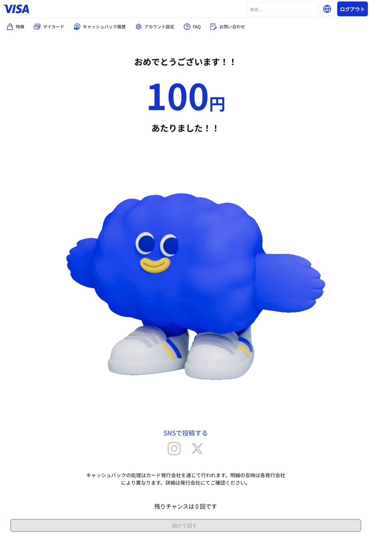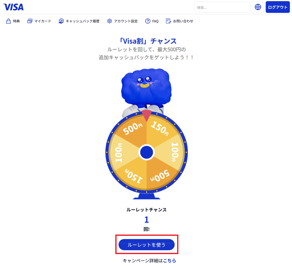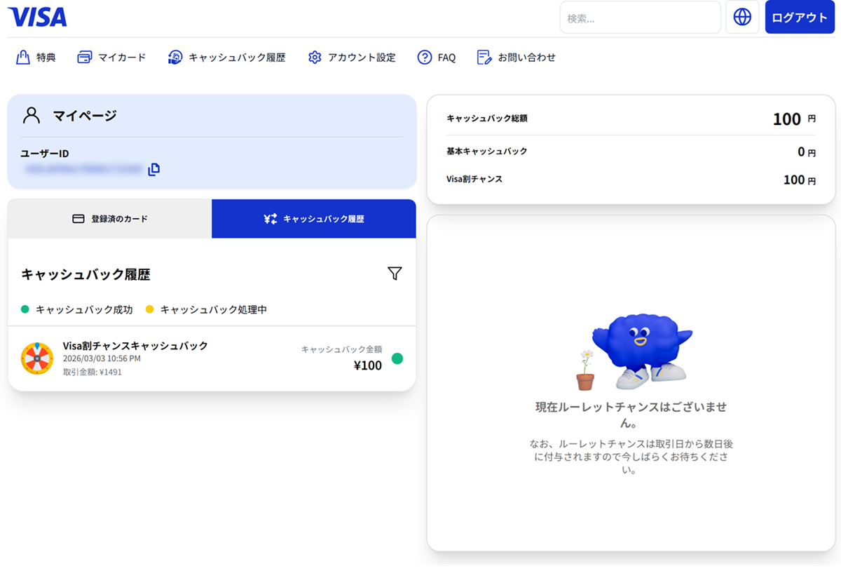- 明細に「VISAワリ キャンペーン」といった項目でマイナス表示(キャッシュバック)される予定