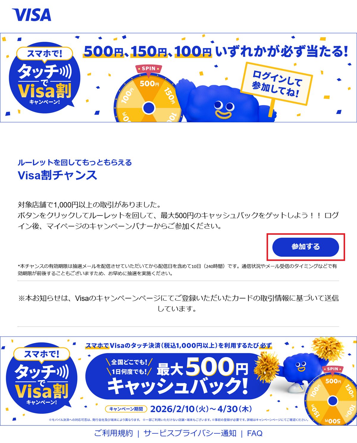 運命のメール「Visa割チャンス 抽選準備完了」が届く