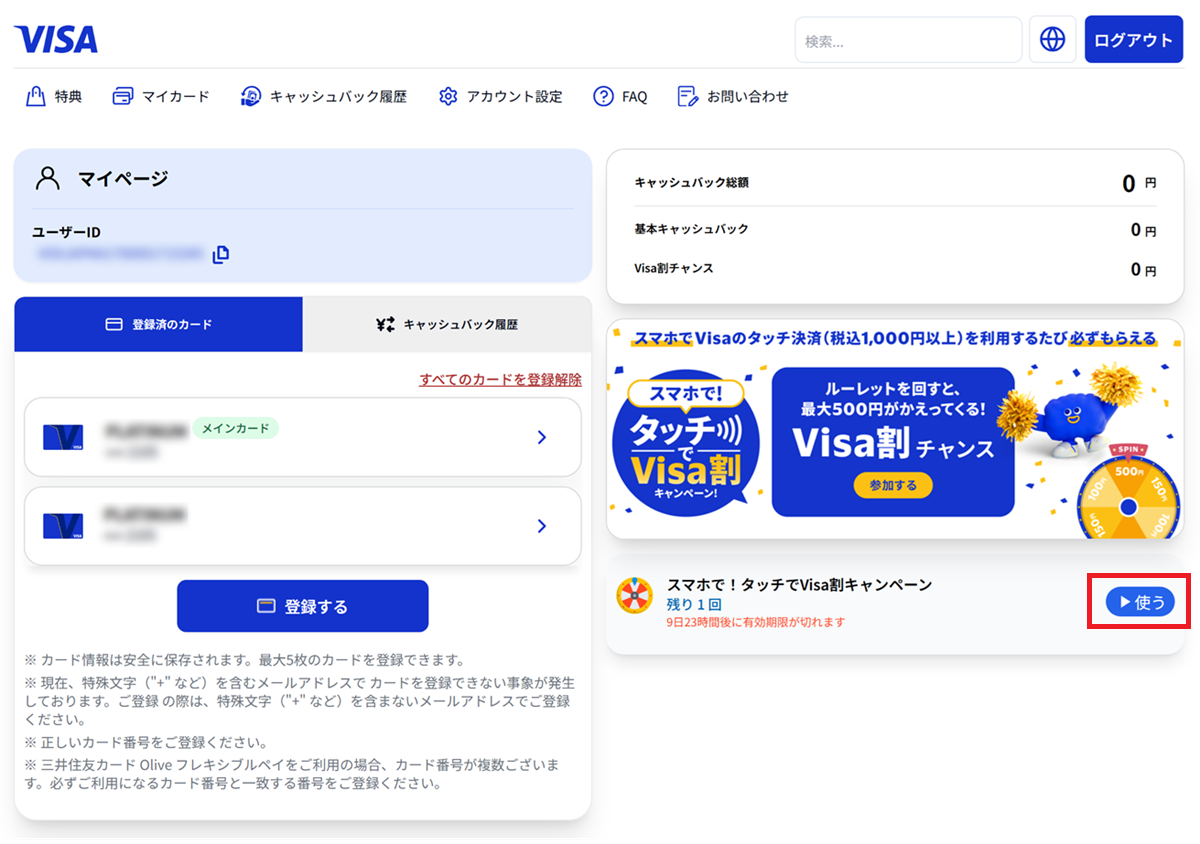 「スマホで!タッチでVisa割」は、最初は登録やルール確認に手間取ります。
