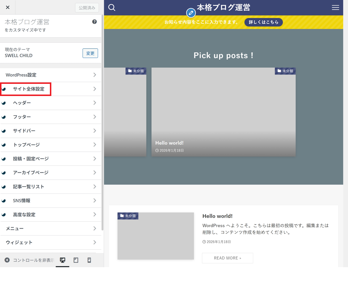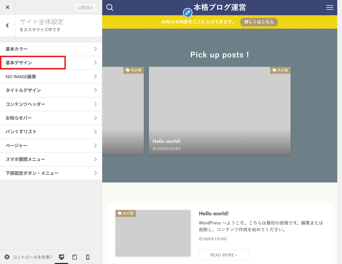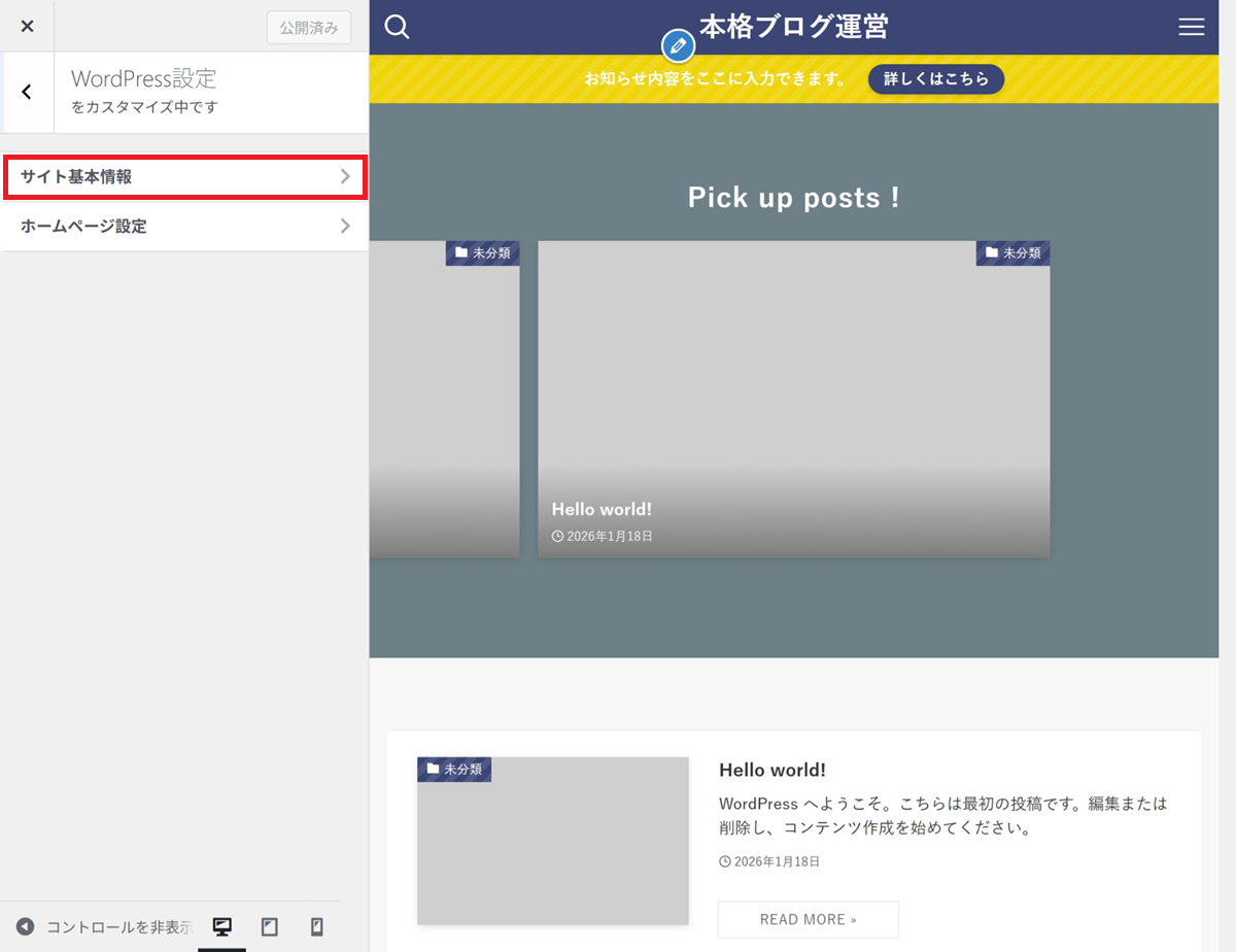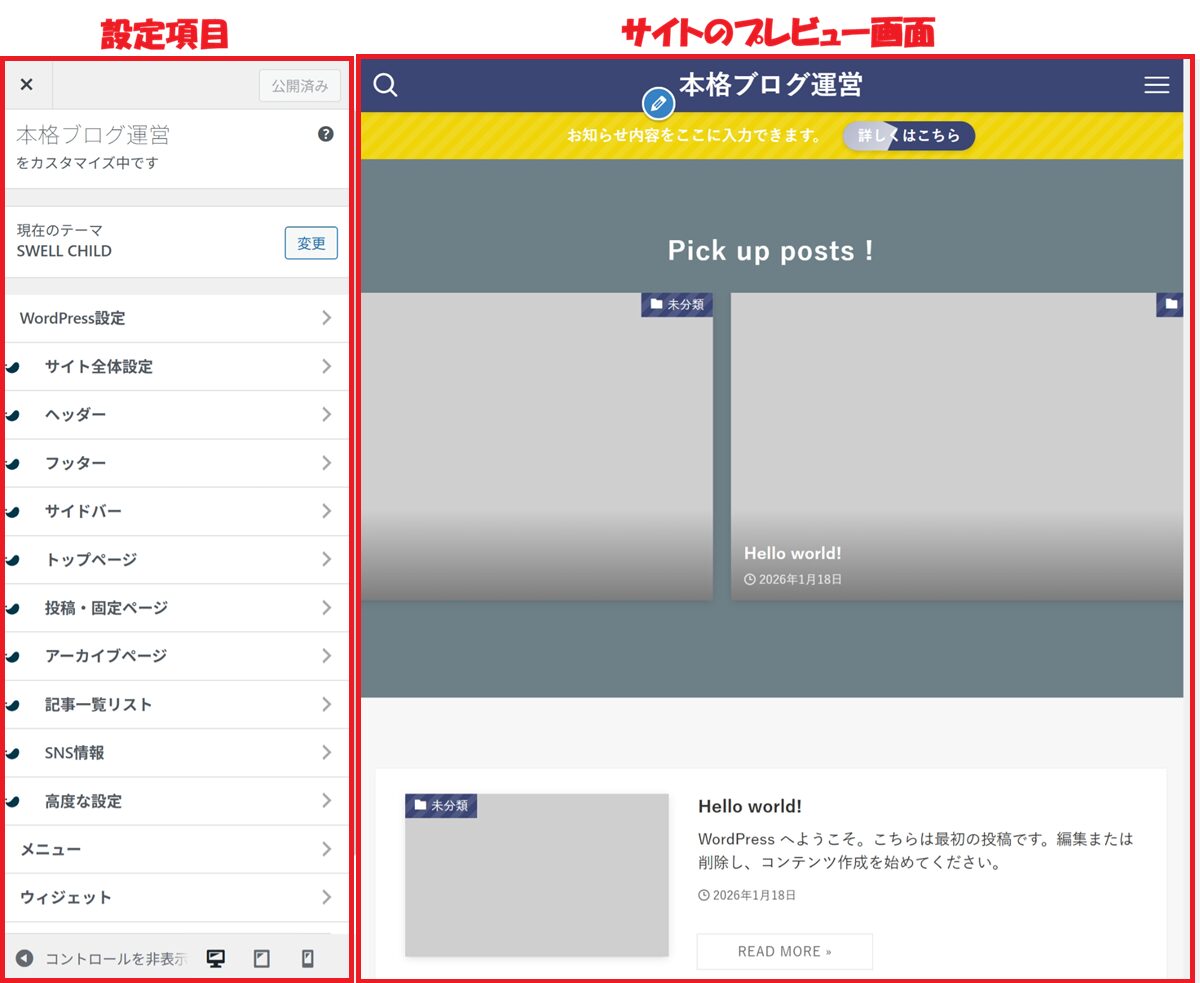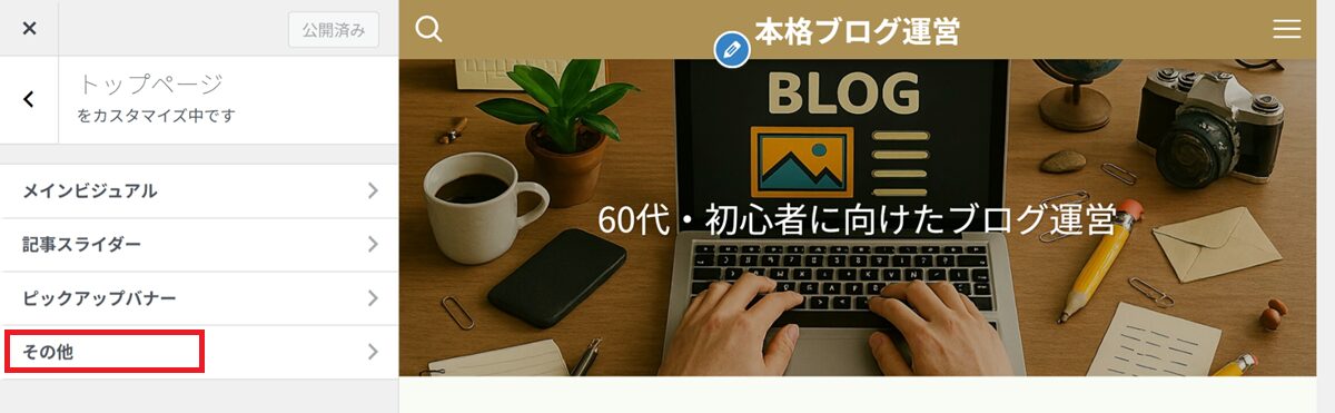 👉 カスタマイザー設定は、あとから何度でも変更できます。