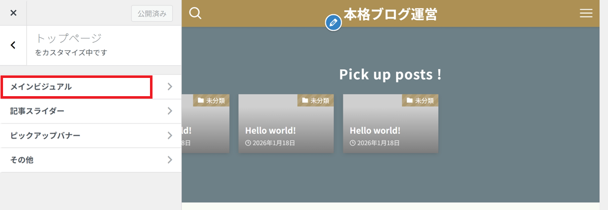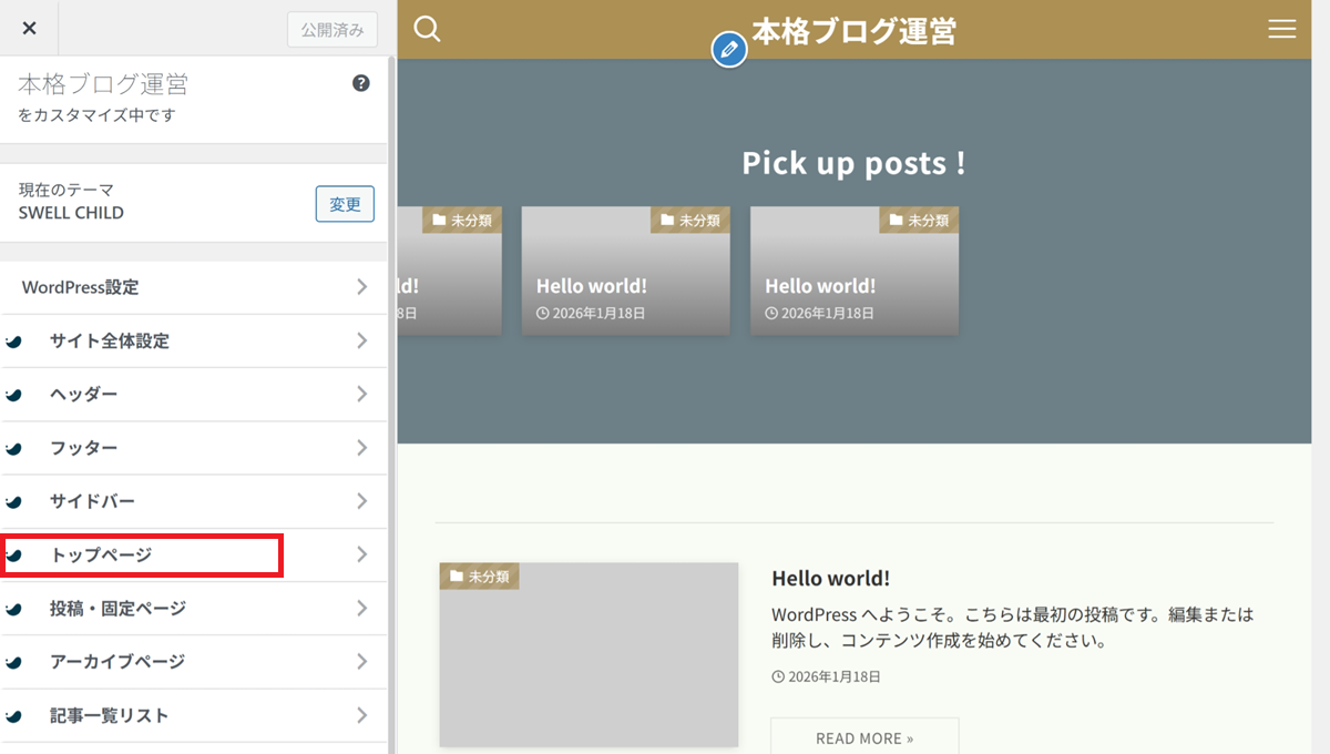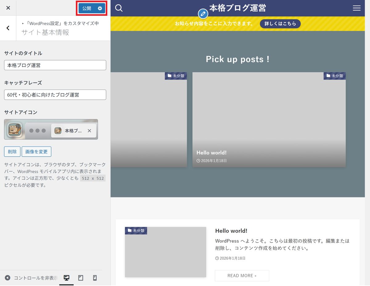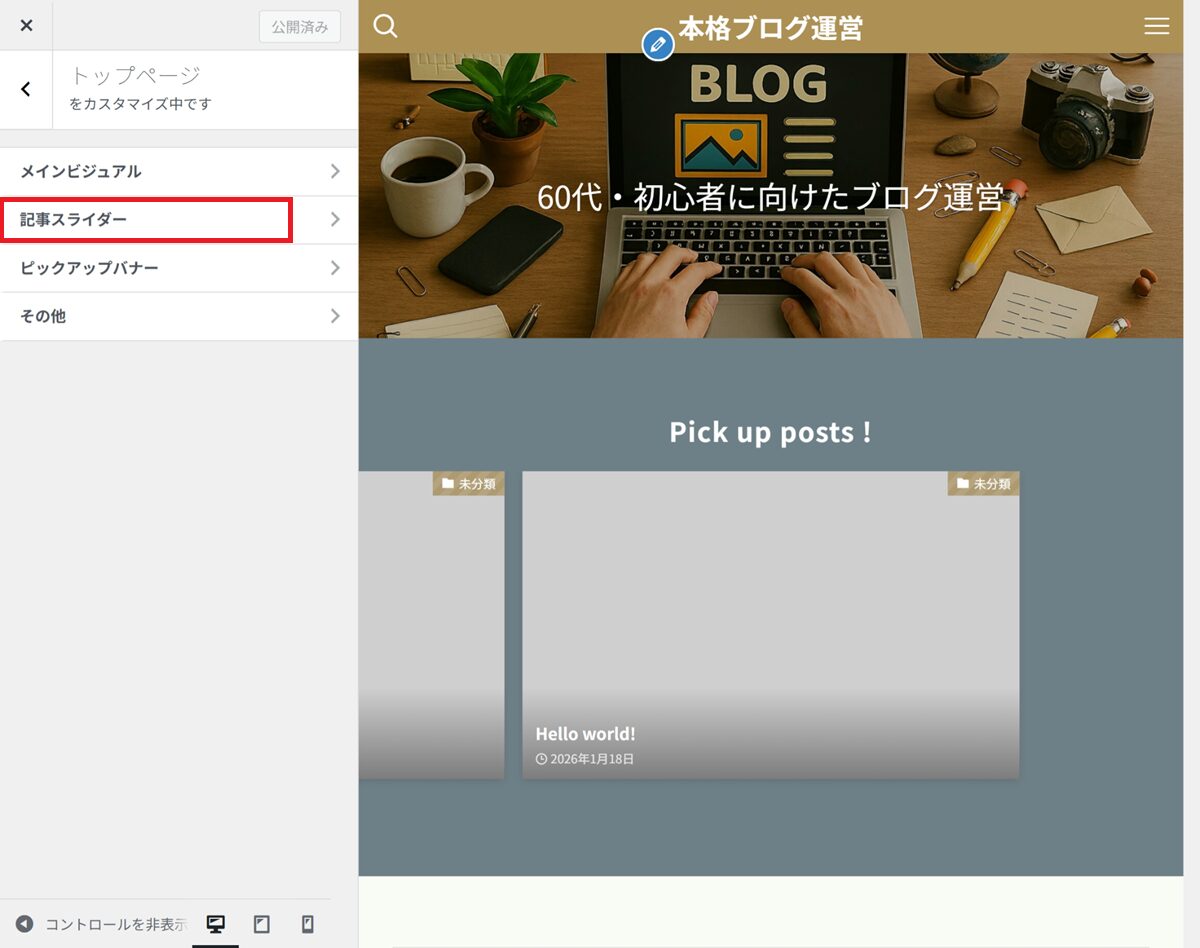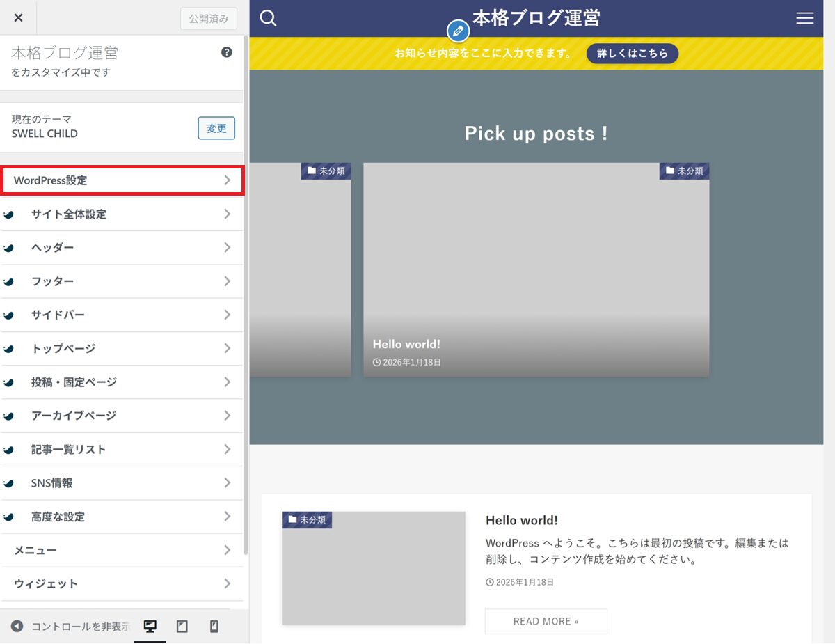 👉 カスタマイザー設定は、あとから何度でも変更できます。