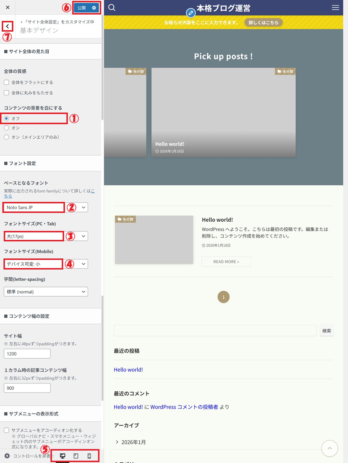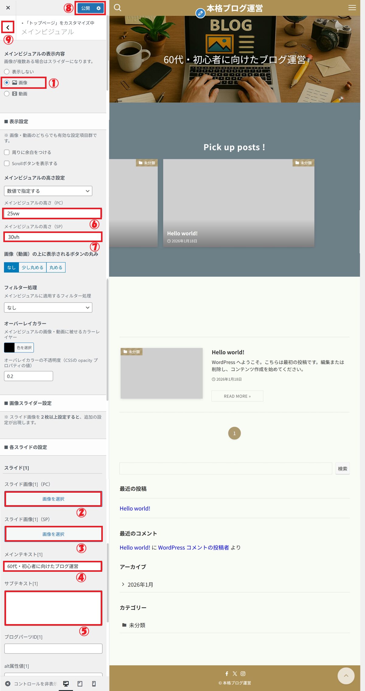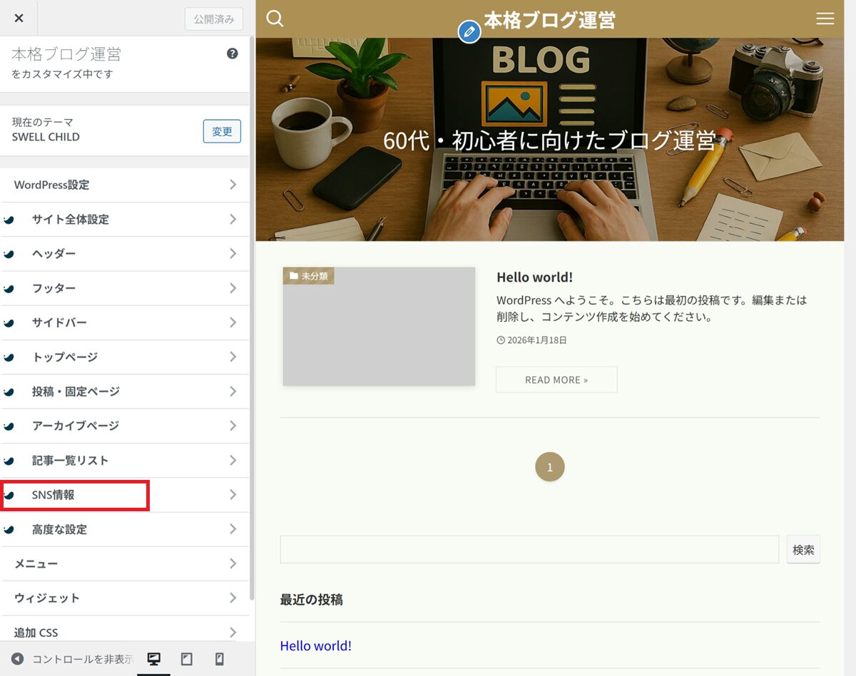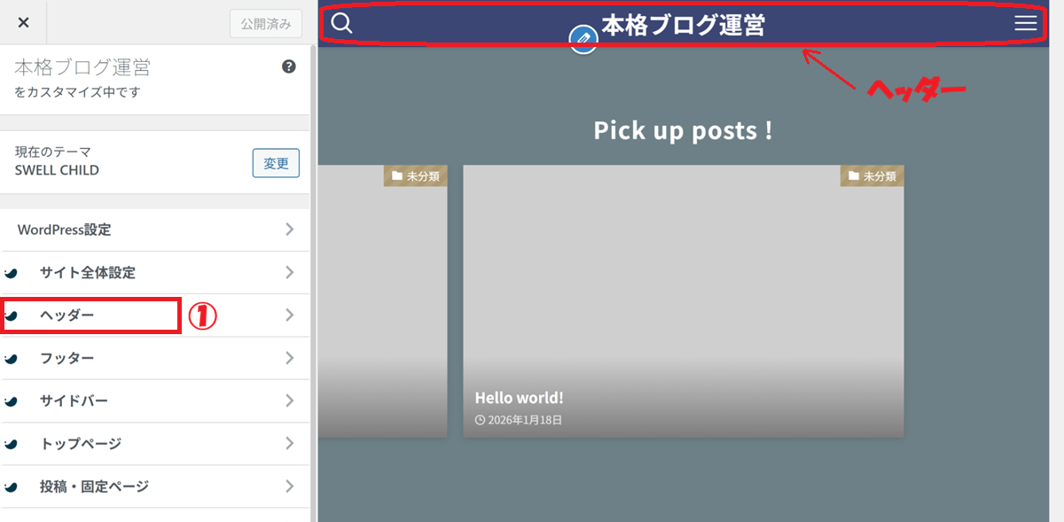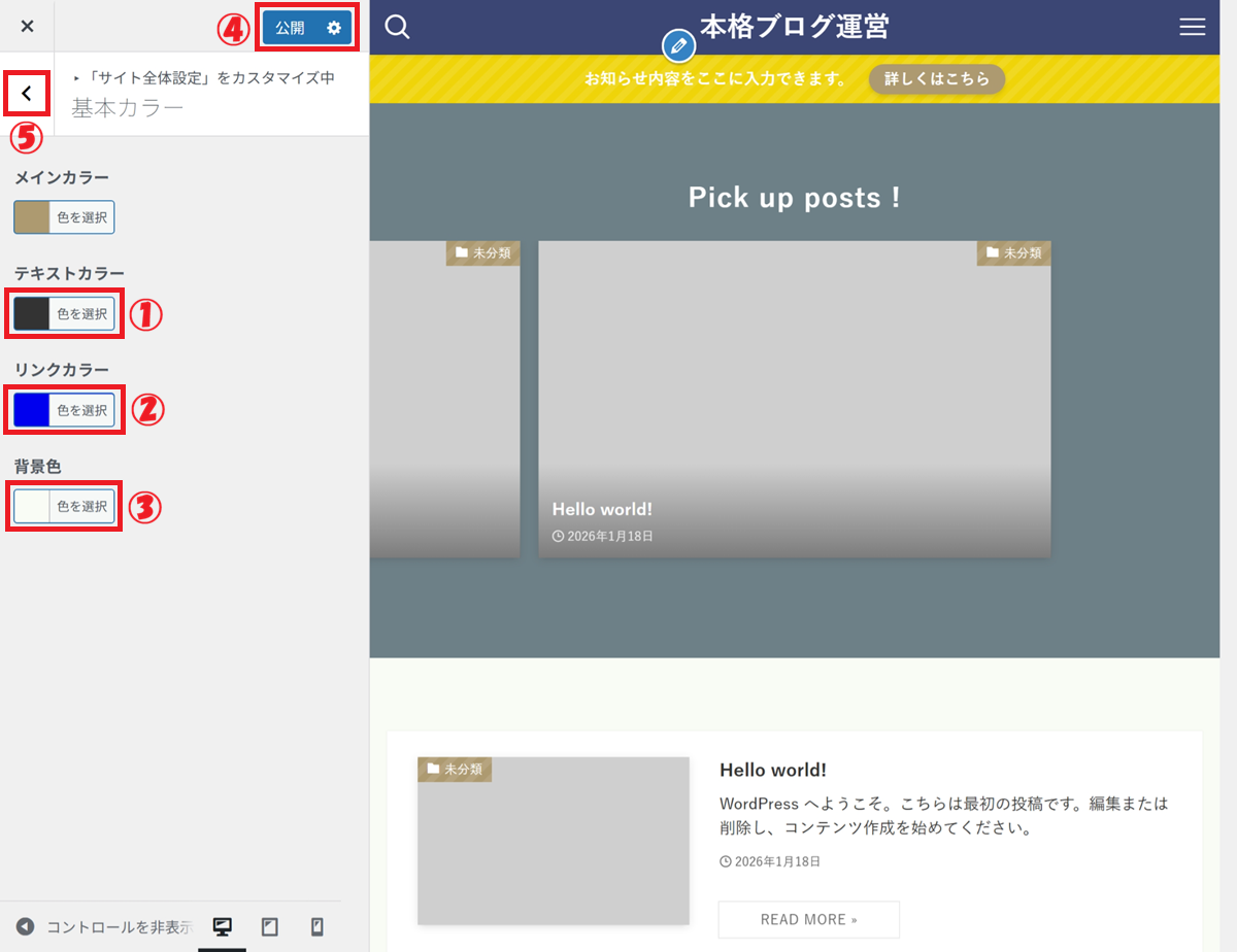 👉 カスタマイザー設定は、あとから何度でも変更できます。