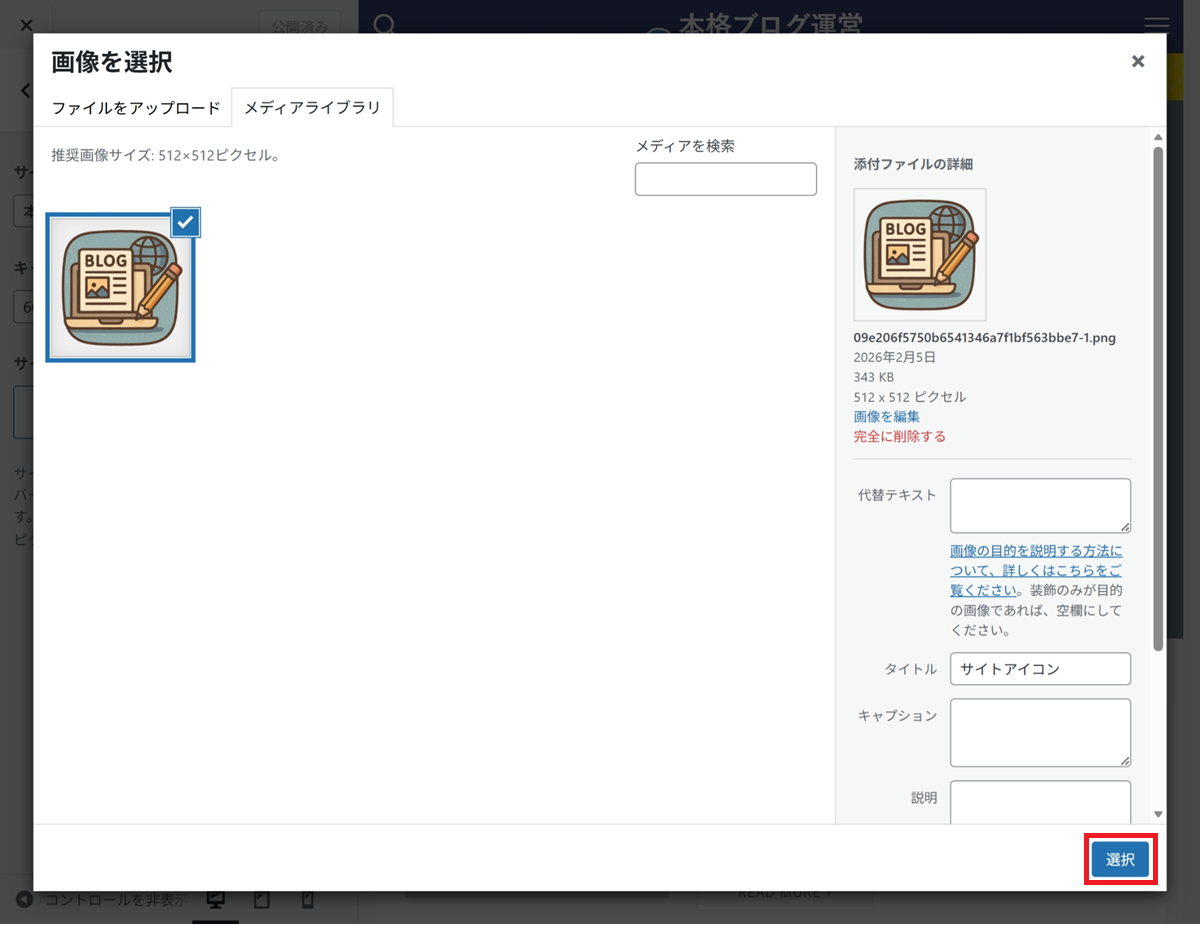 WordPress設定(サイトアイコン)