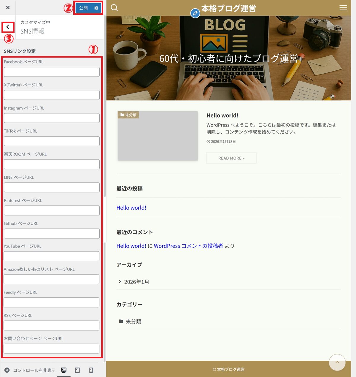 ③ 公開 をクリック(設定内容が保存されます)