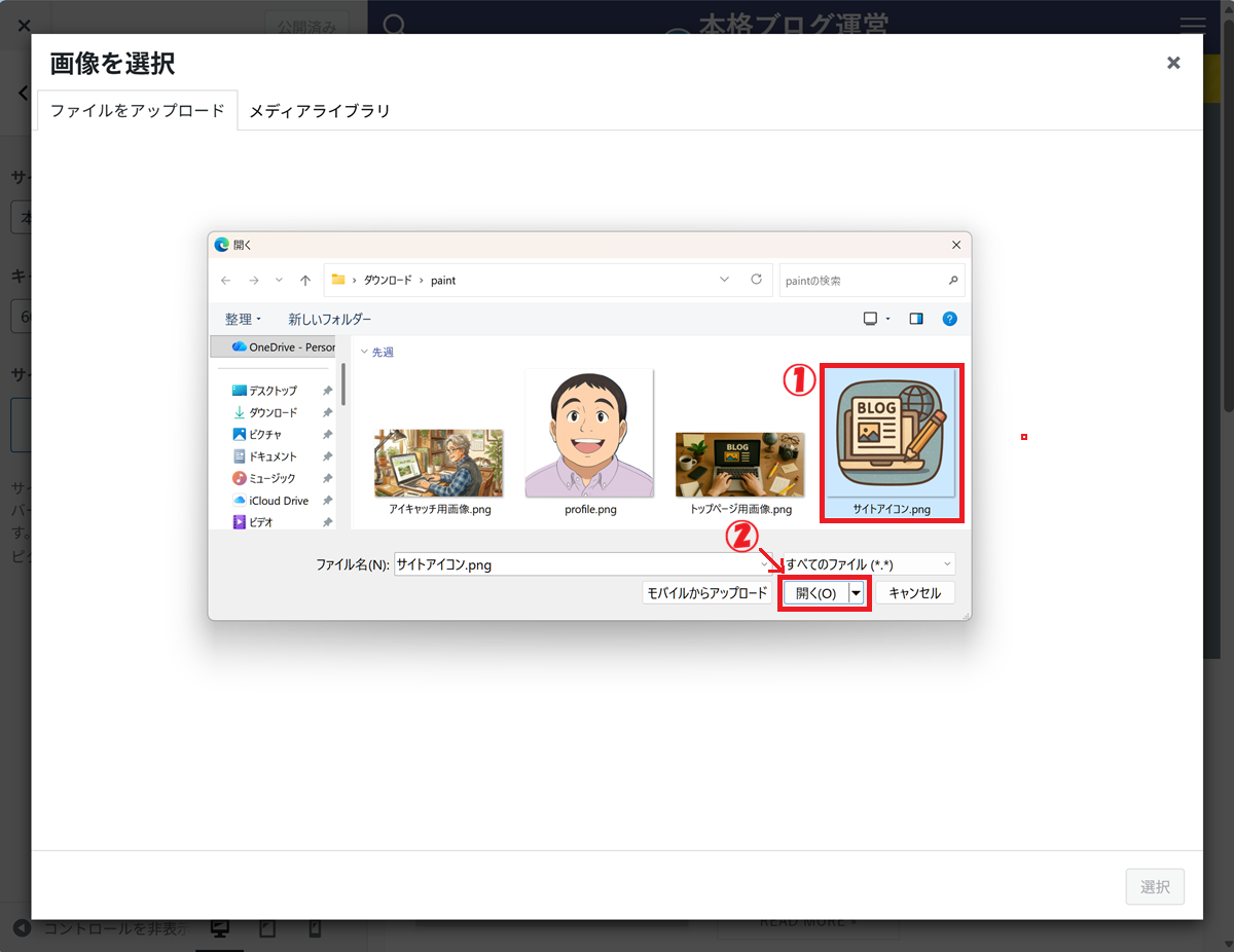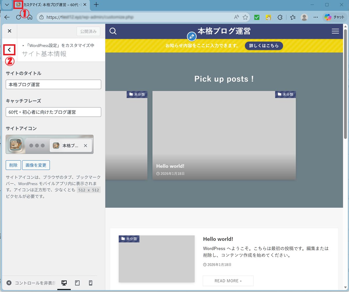 ① 「サイトアイコン」画像をクリック