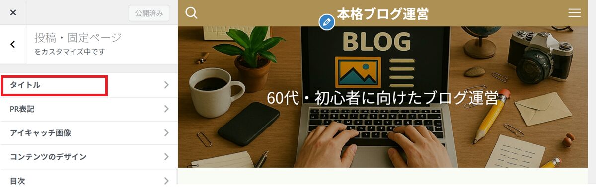 「タイトル」は、投稿や固定ページのタイトルの表示位置や見た目を調整するための設定項目です。